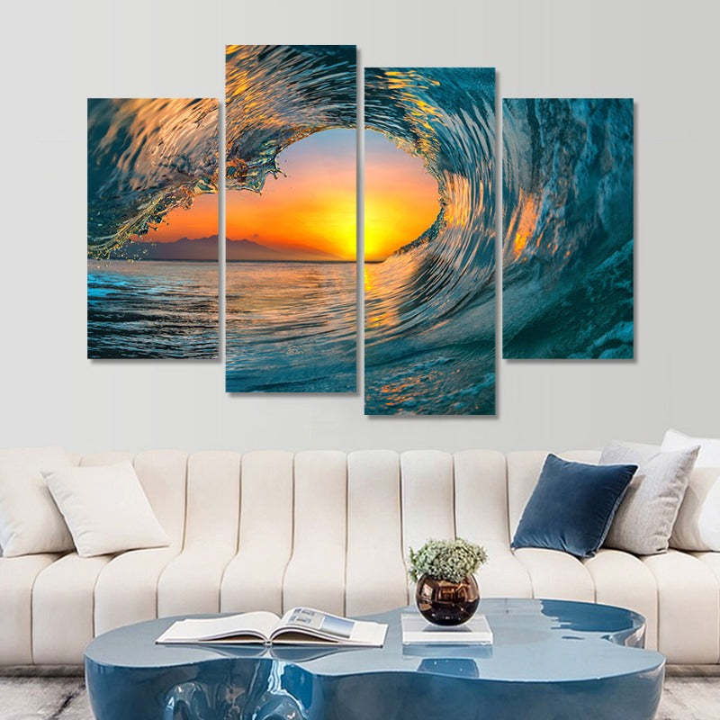 5 Piece Abstract Sunset Through Ocean Wave - Canvas Wall Art Painting is a premium canvas that brings life to your décor. The canvas features an illustration of a close-up of the beautiful Sunset Through Ocean Wave across five canvases. This is great to place in a bedroom, living room, or dining room.