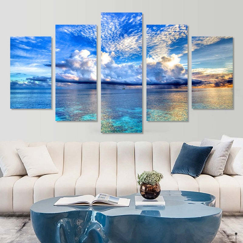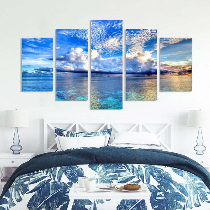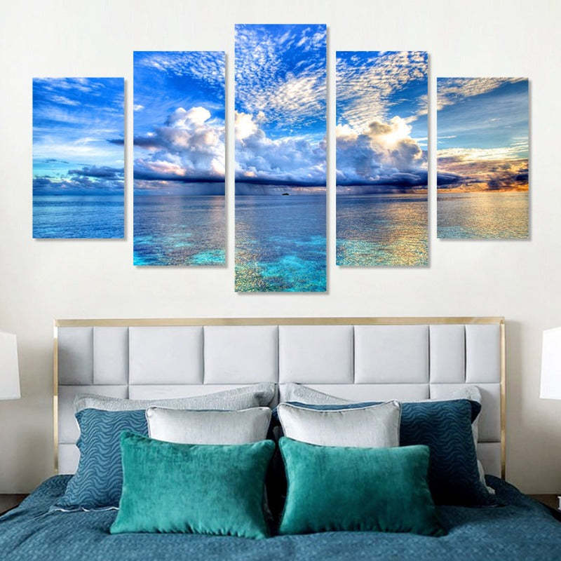 5 Piece Beautiful Blue Sea Landscape - Canvas Wall Art Painting is a premium canvas that adds a touch of architecture art to your décor. The Wall Art is perfect to decorate your bedroom, dining room, living room, office, dormitory, hotel lobby, and more! Mix and match your favorite pieces to create an eye-catching feature wall.