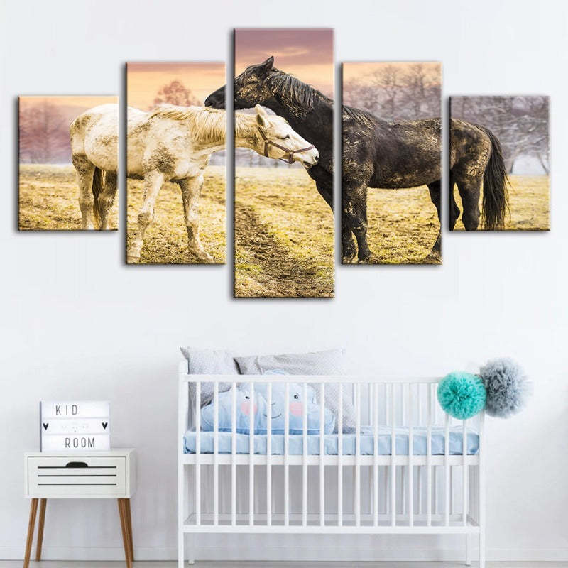 5 Piece Black & White Horses - Canvas Wall Art Painting is a premium canvas that brings life to your décor. The canvas features an illustration of a horse across five canvases. This is great to place in a bedroom, living room, or dining room.