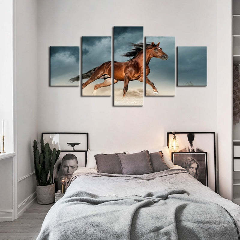5 Piece Brown Horse in Desert - Canvas Wall Art Painting is a premium canvas that brings life to your décor. The canvas features an illustration of a horse across five canvases. This is great to place in a bedroom, living room, or dining room.