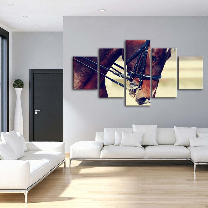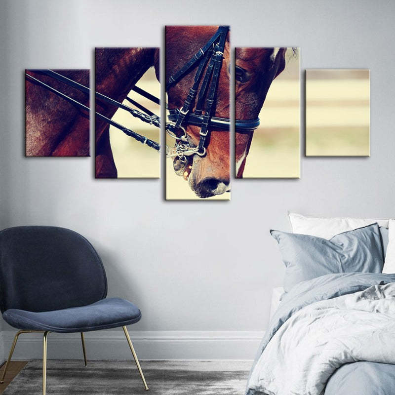 Graceful Haltered Horse 5 Piece - Canvas Wall Art Painting is a premium canvas that adds a peaceful touch to your décor. The canvas features the portrait of a young elegant haltered horse.