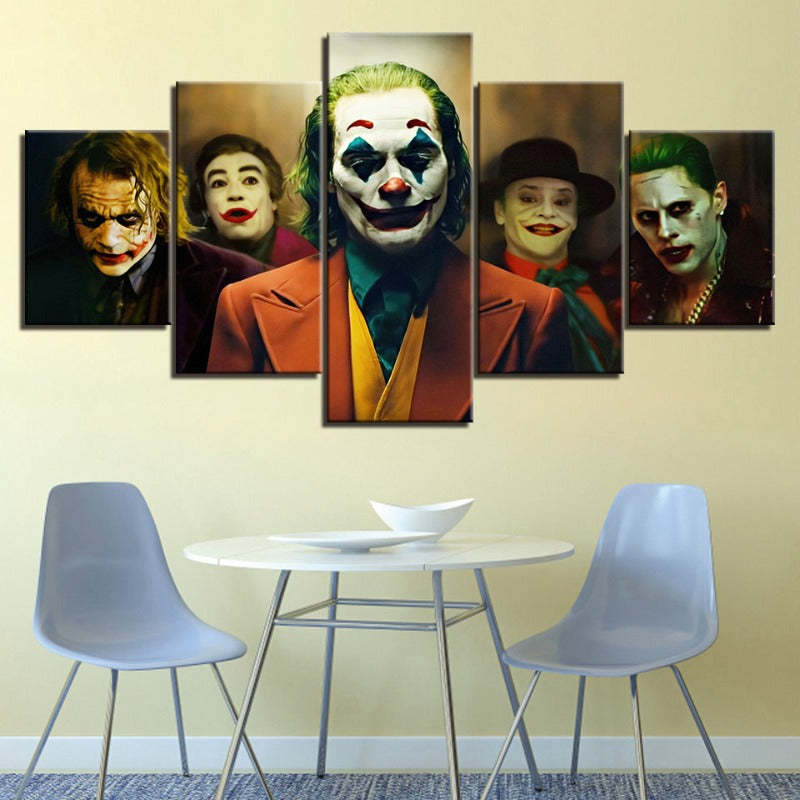Add a touch of the Joker's madness to your space with 5 Piece Joker Versions - Canvas Wall Art Painting.