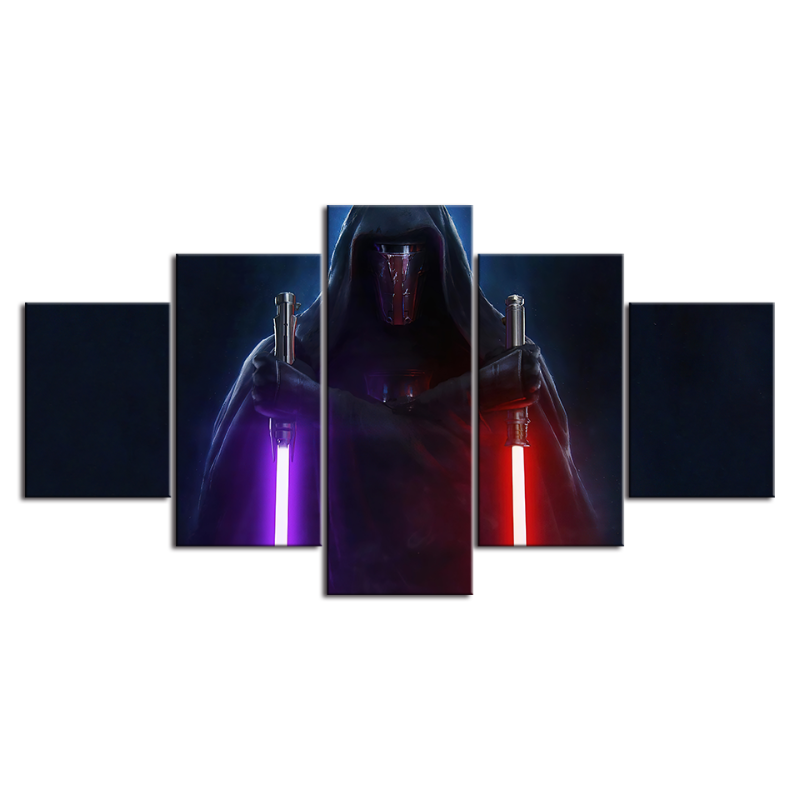 5 Piece Master Of The Dark Sabers - Canvas Wall Art Painting is a premium canvas that brings life to your décor. The canvas features an illustration of an imposing dark master wielding dual sabers of purple and red! This is great to place in a bedroom, living room, or dining room.