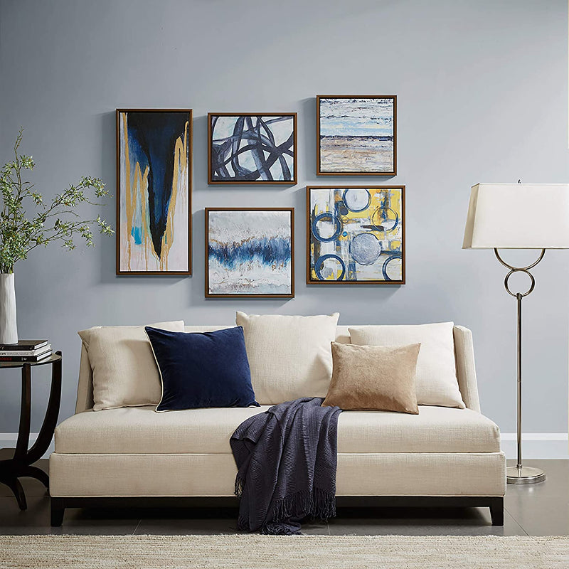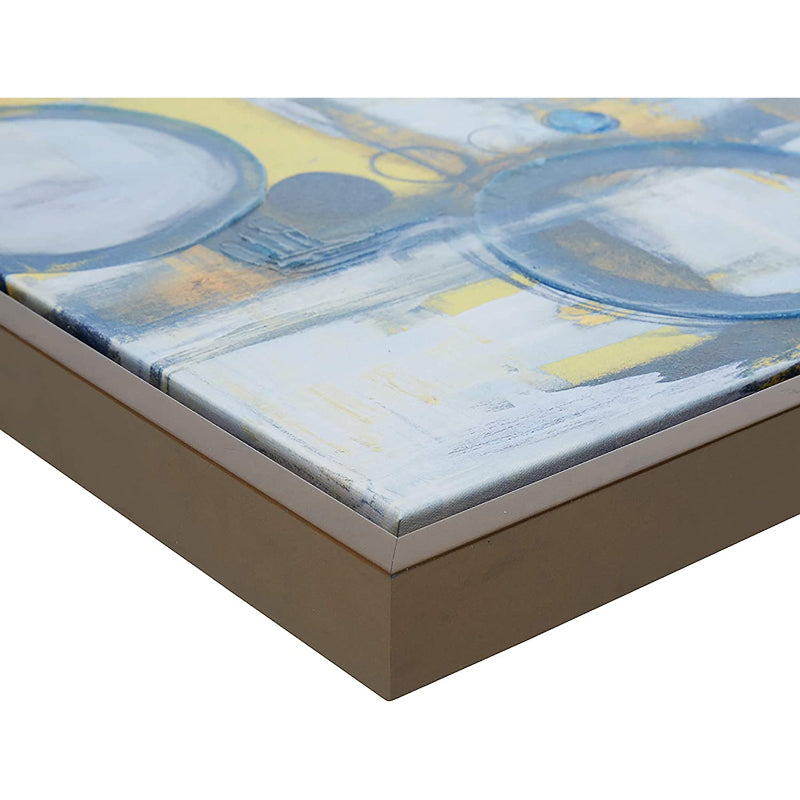 - Lifestyle - Modern abstract design showcasing beautiful contrast of different shades of blue, grey, and yellow. The solid bronze color frame highlights the aesthetic abstract appeal of the design