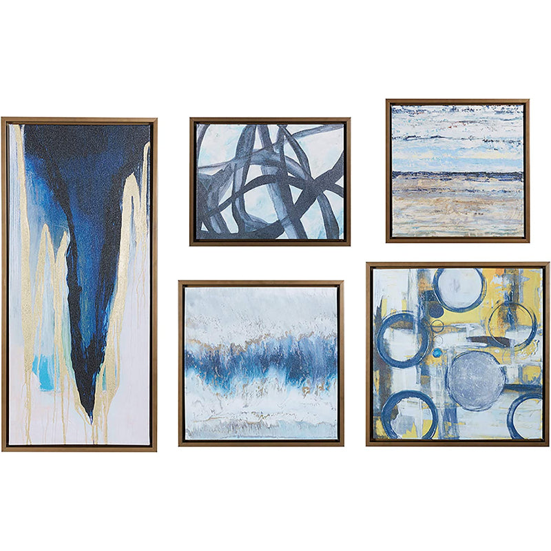 5 Piece Modern Abstract Canvas Wall Art Painting comes in ready to hang bronze frame deco box. The 5 panels can be arranged according to your personal preference. High-quality smooth rolled gel-coated canvas. Excellent for use in the living room, bedroom, kitchen, workplace, hotel, dining area, bathroom, bar, etc. This is a wonderful present suggestion for your family and friends.