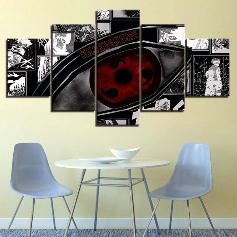 Add a touch of ninja-themed artwork to your decor with the Naruto Sharingan Anime - 5 Piece Canvas Wall Art Painting.