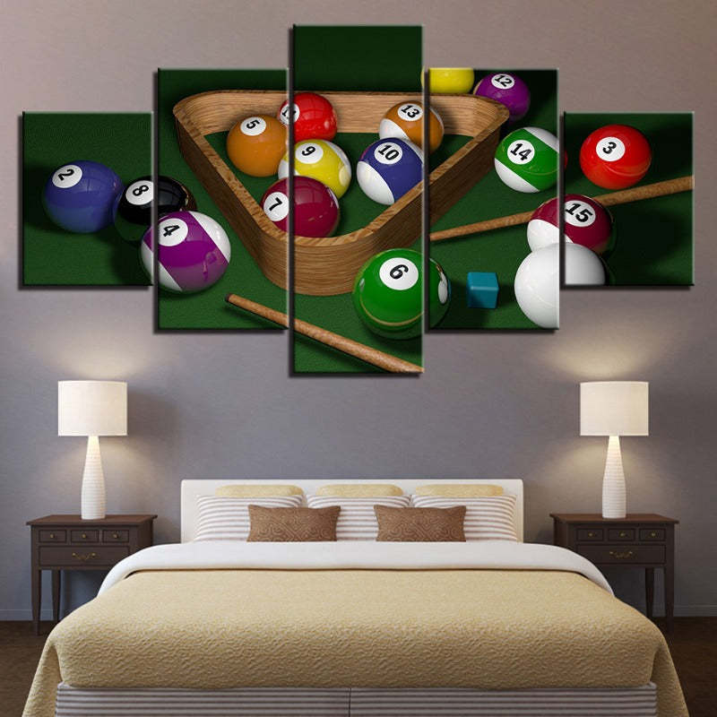 5 Piece Pool Balls - Canvas Wall Art Painting is a premium canvas that adds a touch of architecture art to your décor. The Wall Art is perfect to decorate your bedroom, dining room, living room, office, dormitory, hotel lobby, and more! Mix and match your favorite pieces to create an eye-catching feature wall.