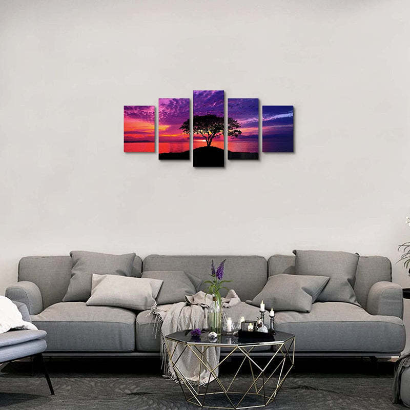 This 5 Piece Red Beach Sunset Canvas Wall Art Painting is ideal for your living room, bedroom, kitchen, office, hotel, dining room, bathroom, bar, etc. It is made up of high-quality canvas. These paintings are very easy to hang. It is a great gift idea for your relatives and friends. These paintings will enhance the look of your home interior.