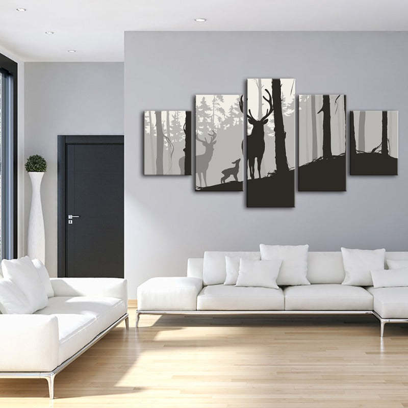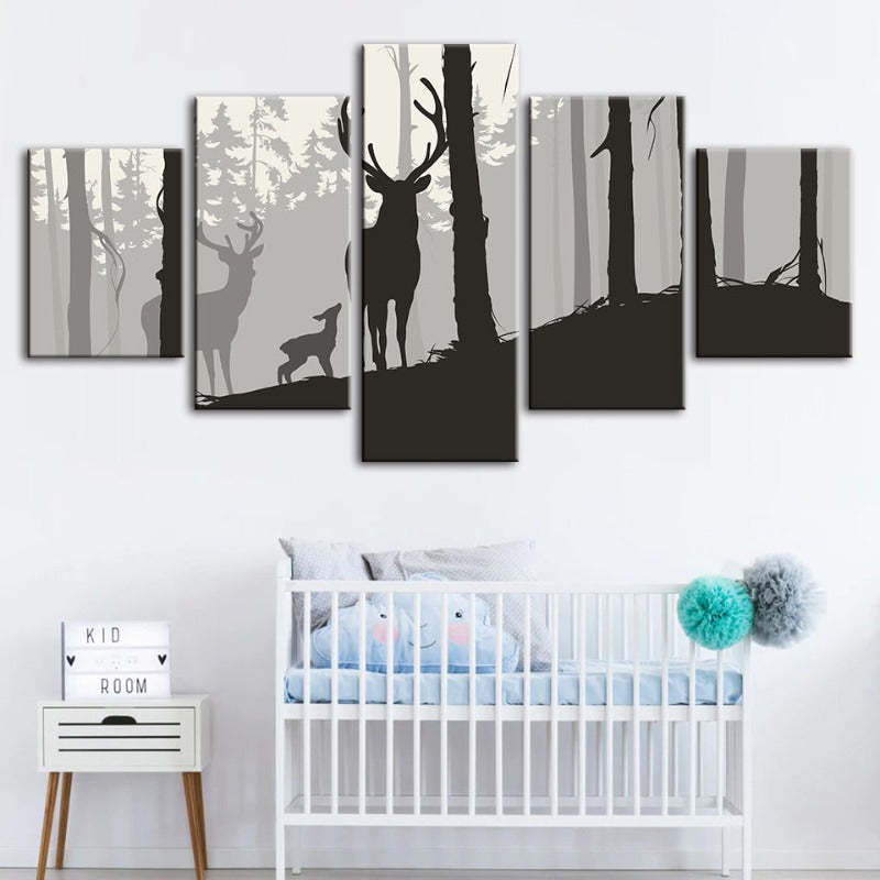 Winter Deer at Dawn 5 Piece - Canvas Wall Art Painting is a premium canvas that adds a peaceful touch to your décor. The canvas features a stunning lone deer being backlit by an ethereal golden sunrise.