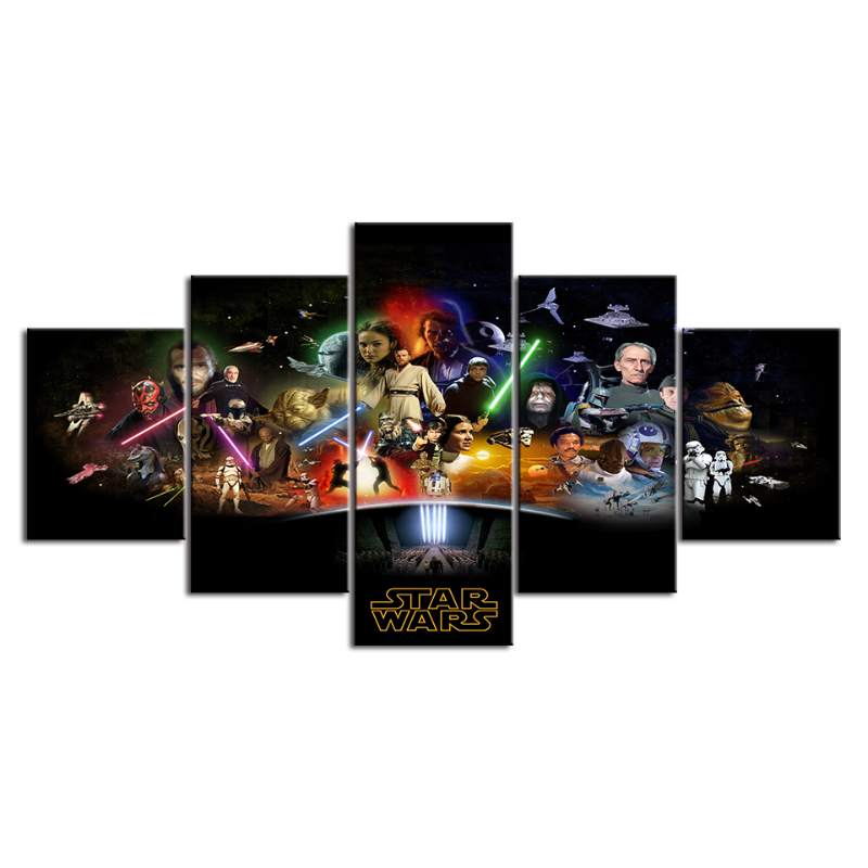 5 Piece The First Generations Battle - Canvas Wall Art Painting is a premium canvas that brings life to your décor. The canvas features an illustration of the original cast to engage in the battle between the light and dark sides! This is great to place in a bedroom, living room, or dining room.