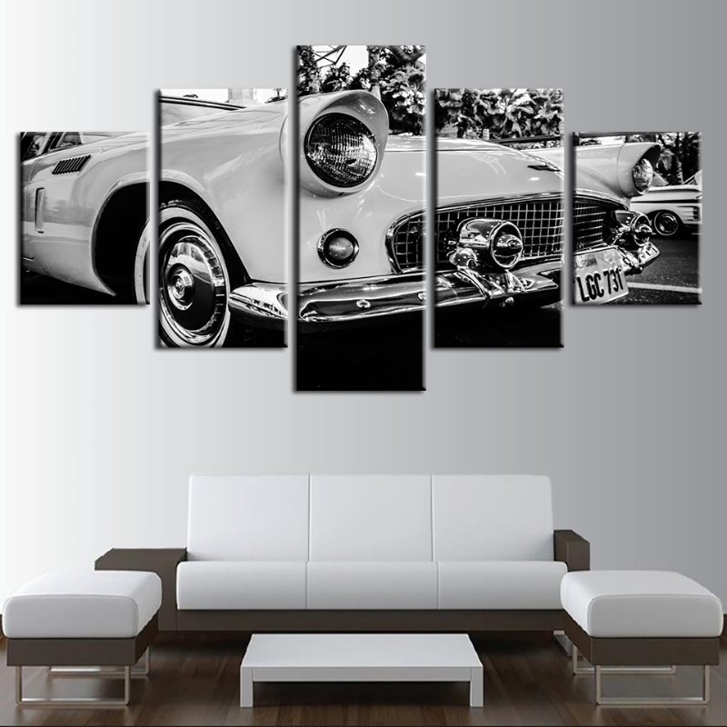 5 Piece White Vintage Classic Car - Canvas Wall Art Painting is a premium canvas that brings life to your décor. The canvas features an illustration of a close-up of a cute car with majestic horns across five canvases. This is great to place in a bedroom, living room, or dining room.