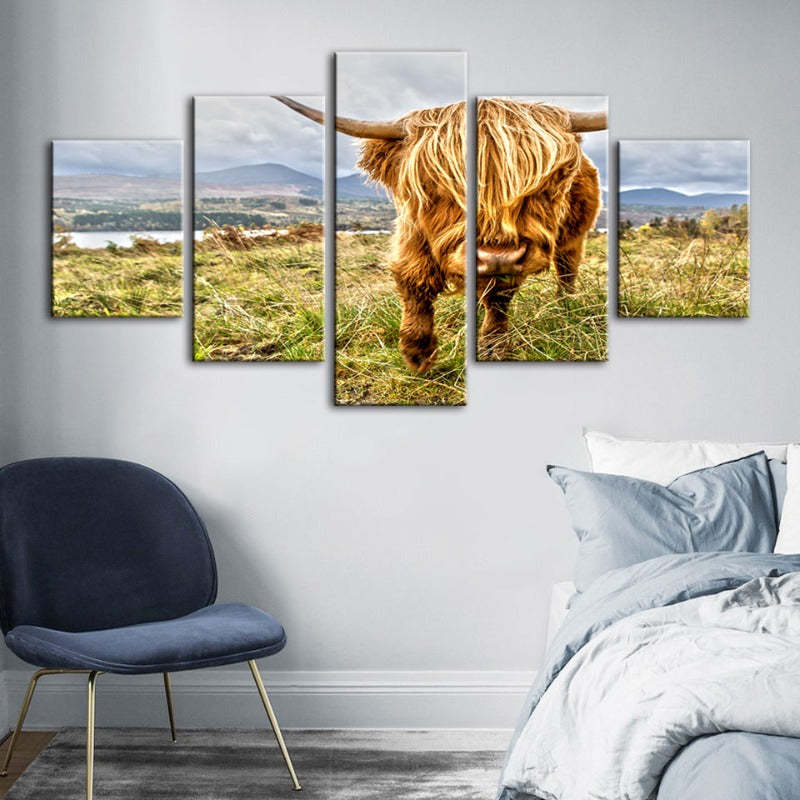 5 Piece Wild Cow - Canvas Wall Art Painting is a premium canvas that brings life to your décor. The canvas features an illustration of a cheerful cow with majestic horns. This is great to place in a bedroom, living room, or dining room.