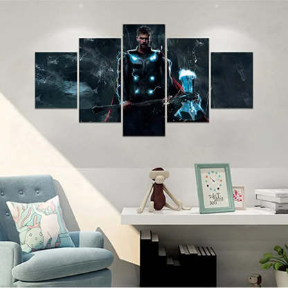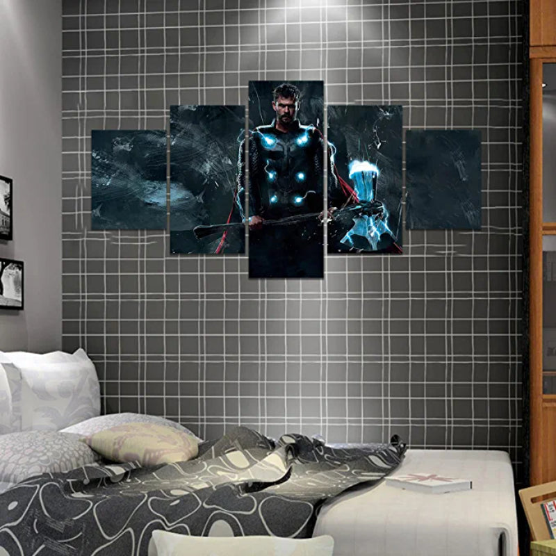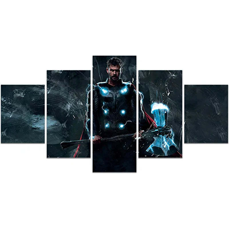 Purchase this stunning 5 Pieces Thor Poster Canvas Painting high-definition artwork to your heart's content! It comes with a wooden bar attached for easy hanging out of the box. The piece is printed on high-quality canvas with high resolution and unrivaled color accuracy. a fantastic gift idea for your loved ones!