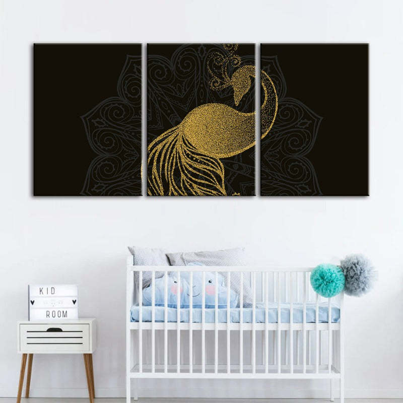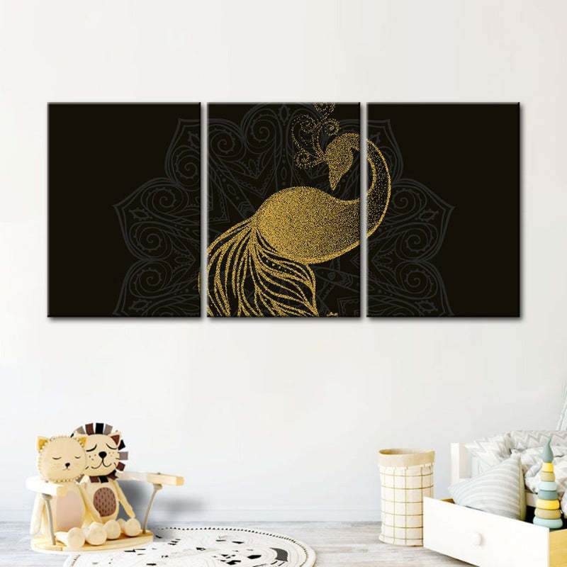 Abstract Golden Mandala Peacock - Canvas Wall Art Painting 3 Pieces a premium canvas that adds a peaceful touch to your décor. The canvas features a golden Mandala like the pattern of an abstract peacock.