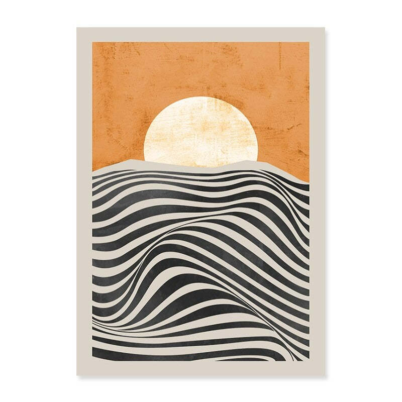 Abstract Sunrise Geometric Bright Terracotta - Canvas Wall Art Print is a premium print poster that adds a peaceful touch to your decor. It features a warm neutral color palette with stunning abstract designs. The Wall Art is perfect for decorating your bedroom, dining room, living room, office, dormitory, hotel lobby, and more! Mix and match your favorite pieces to create an eye-catching feature wall.