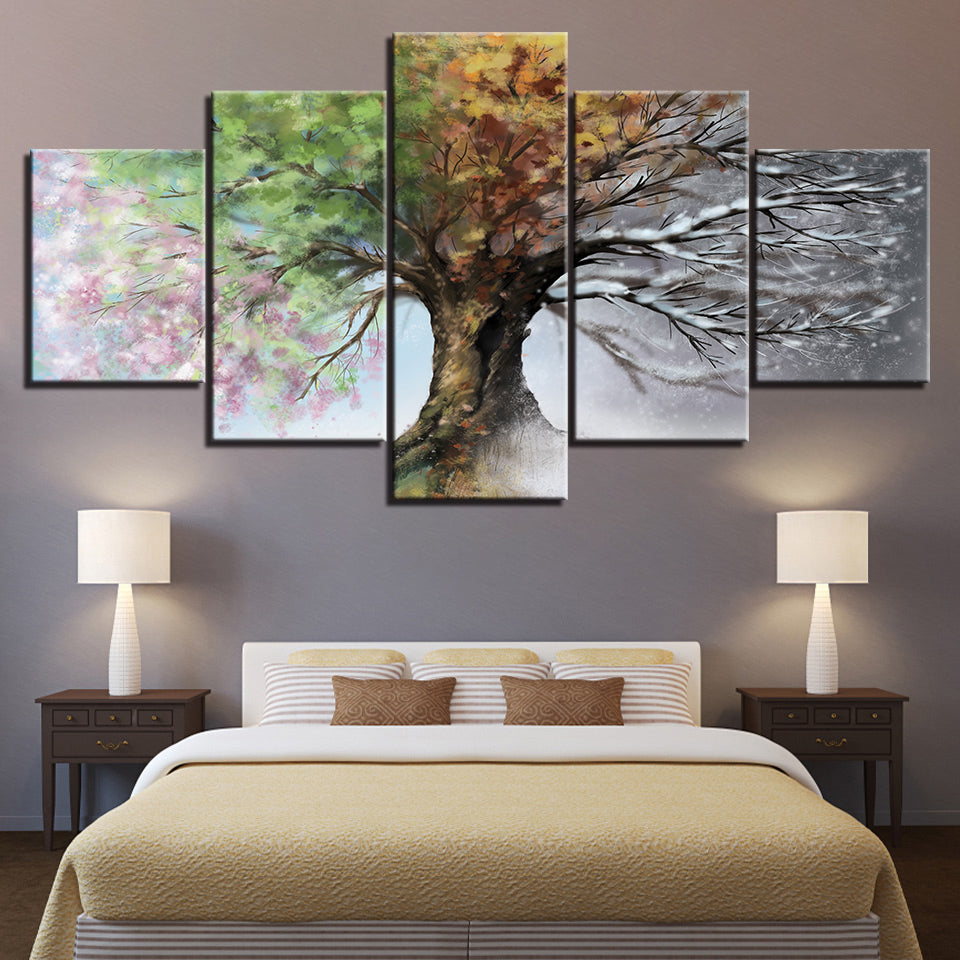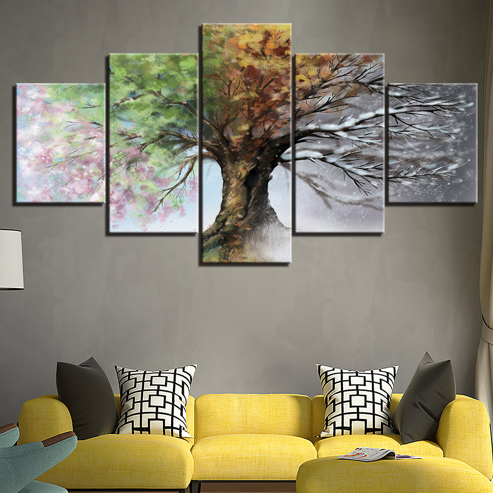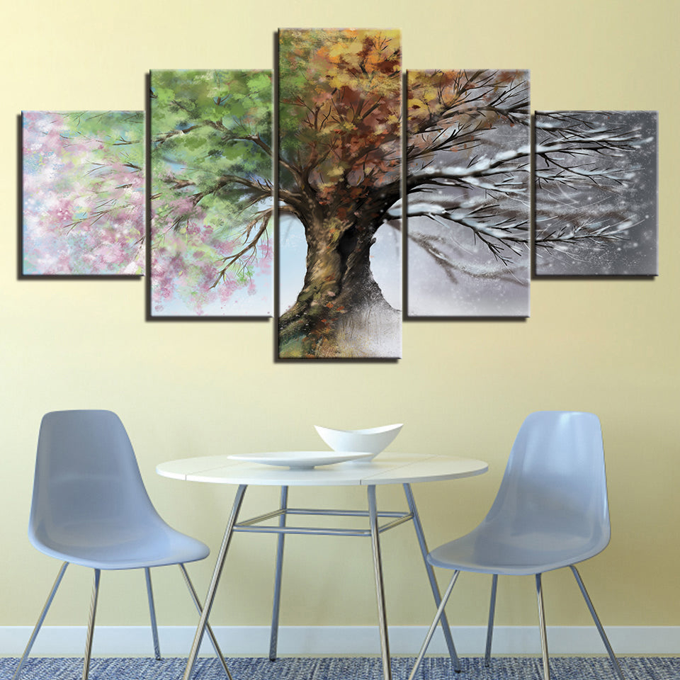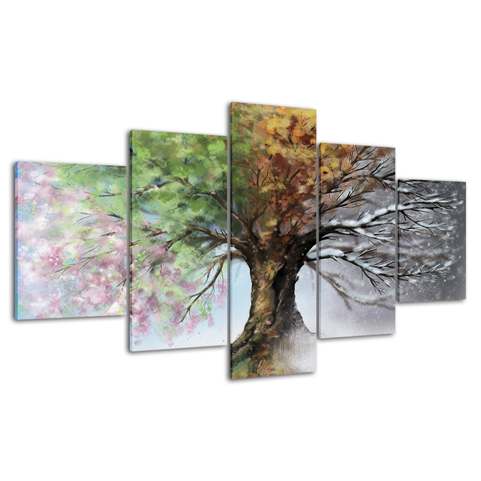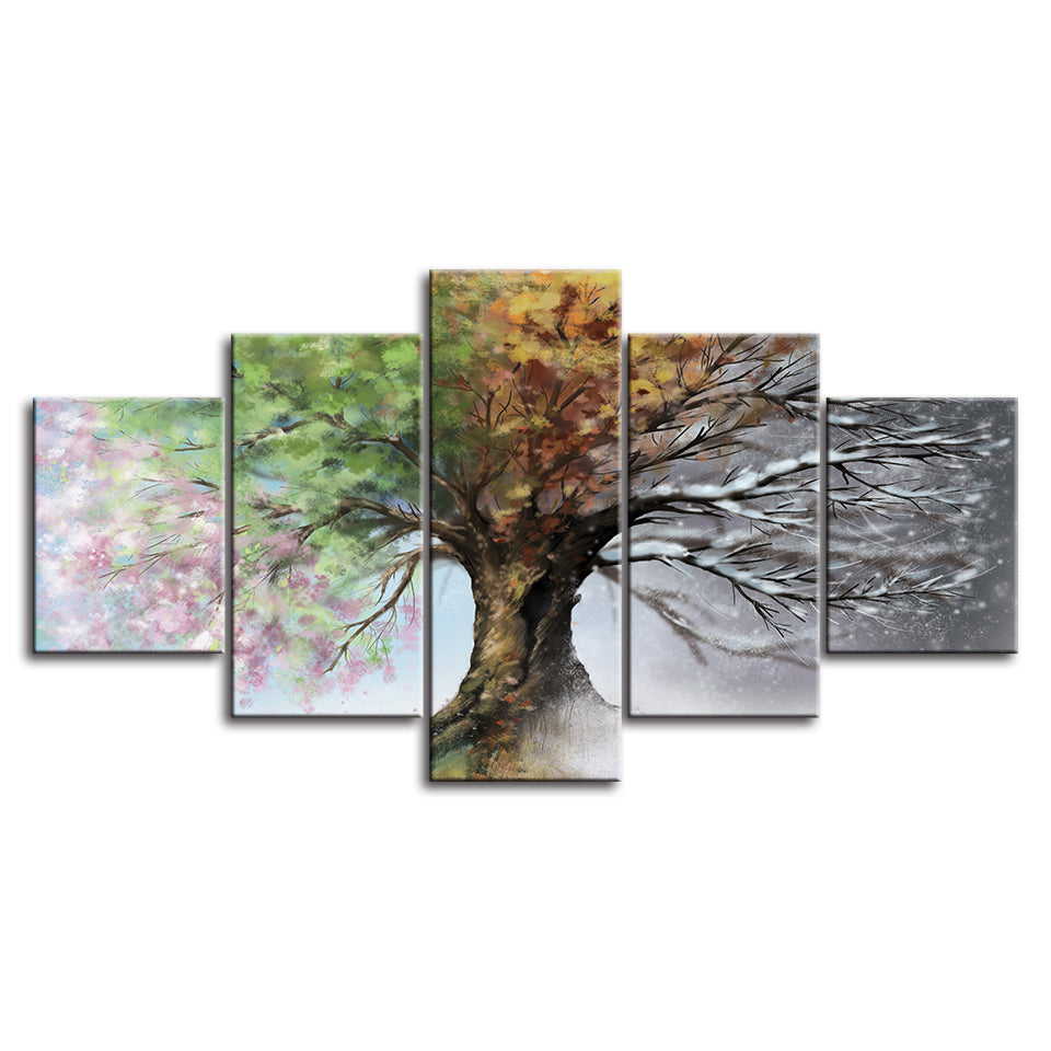 All Season Tree - Canvas Wall Art Painting is a premium canvas that adds a touch of nature to your décor. The canvas features a big tree that shows off its state in Spring, Summer, Fall, and Winter. This is a great picture to set up in a bedroom or living room. The Wall Art is perfect for decorating your bedroom, dining room, living room, office, dormitory, hotel lobby, and more! Mix and match your favorite pieces to create an eye-catching feature wall.