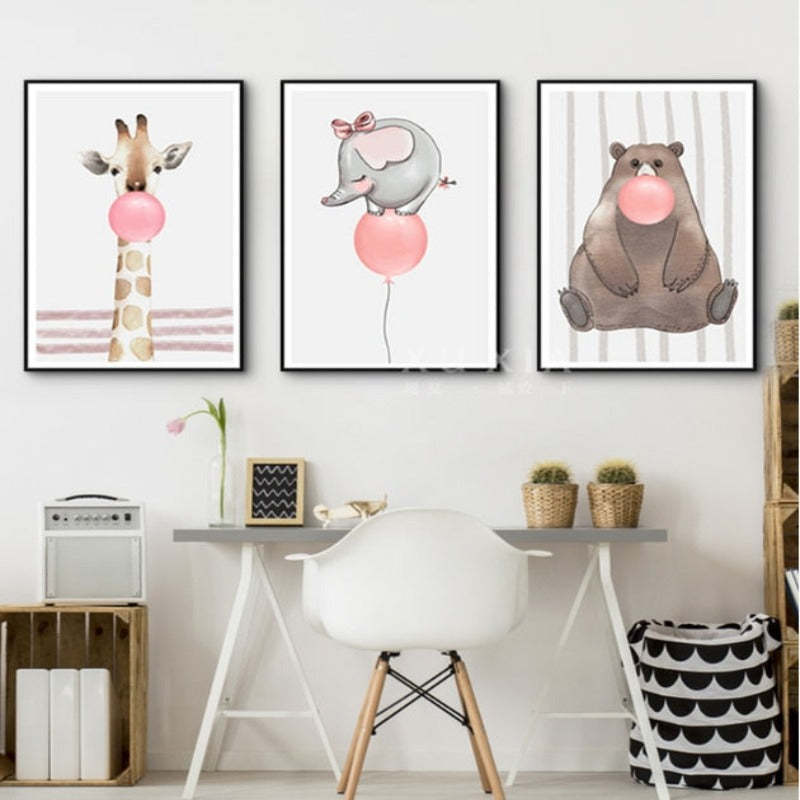 Balloon Party At Woodland - Canvas Wall Art Painting is a colorful canvas ideal for the room of your kids. It has a white background canvas with different animals painted on it with a balloon which is made from high-quality waterproof ink. It will add fun and colors to your kid's room.