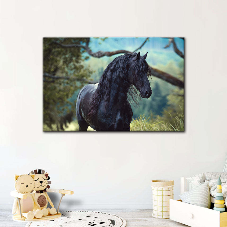 Black Horse in Forest is a premium canvas that adds a touch of nature to your décor. The canvas features waves with the scenery in the back. The Wall Art is perfect to decorate your bedroom, dining room, living room, office, dormitory, hotel lobby, and more! Mix and match your favorite pieces to create an eye-catching feature wall.