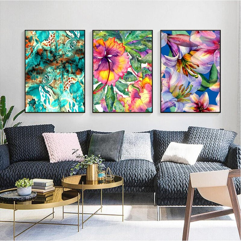 Our all-new beautiful Blue Pink Floral - Canvas Wall Art Painting canvas is a gorgeous way to introduce a new style to your home. This canvas features abstract flower designs which are colorful and aesthetical to the place. This fantastic piece also has hints of gold to perfectly complement the blissful blue this painting brings.