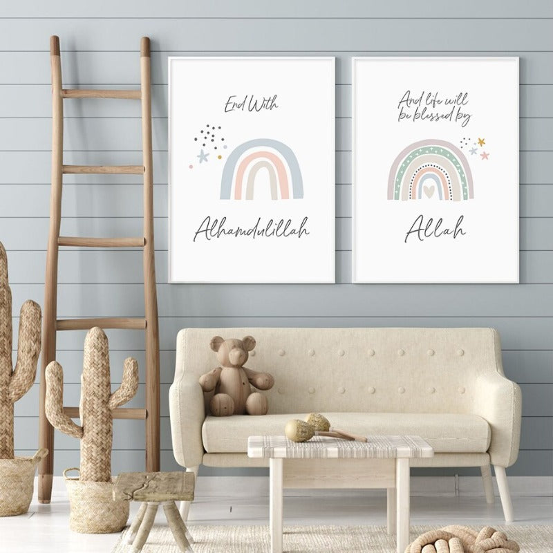 Boho Islamic Quotes Rainbow Nursery - Canvas Wall Art Print is a premium print poster that adds a peaceful touch to your décor. The Wall Art is perfect to decorate your bedroom, dining room, living room, office, dormitory, hotel lobby, and more! Mix and match your favorite pieces to create an eye-catching feature wall.
