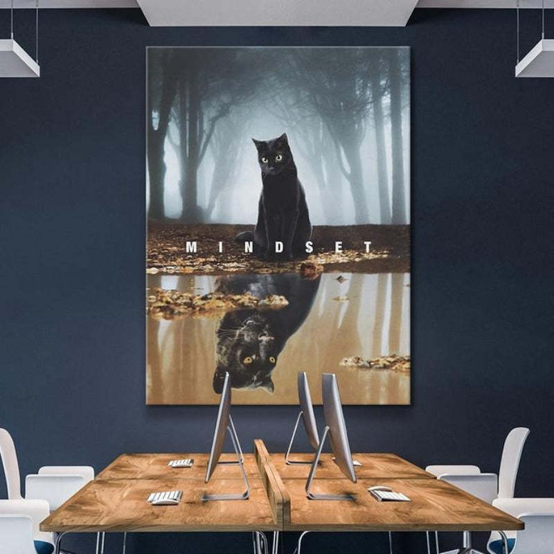 Cat Reflection-Canvas Wall Art Painting is a premium canvas that adds a touch of inspiration to your décor. The canvas features a cat reflection with different points of view. The asymmetrical layout provides a calming, relaxing feeling to anyone who decides to look.