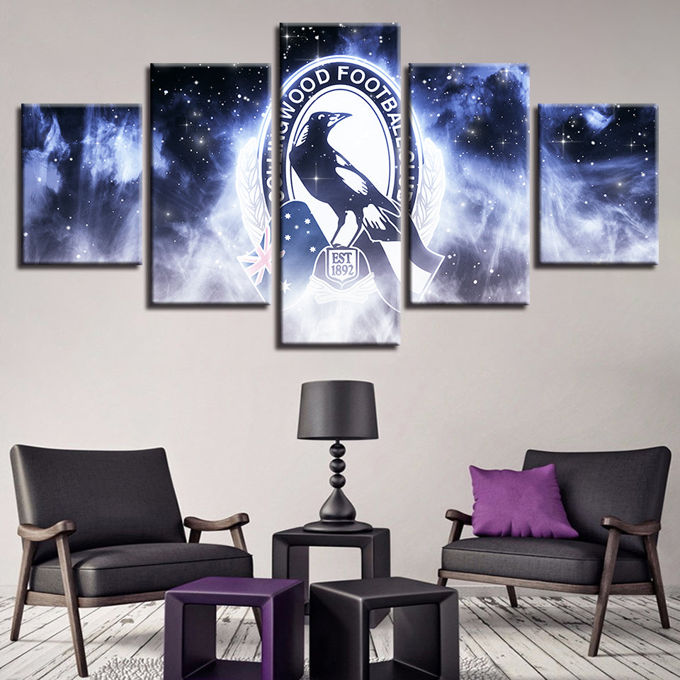 Collingwood Football Club 5 Piece - Canvas Wall Art Painting is a premium canvas that adds a peaceful touch to your décor. The canvas features the Collingwood Football Clubs logo with a startlingly charming electric backdrop.