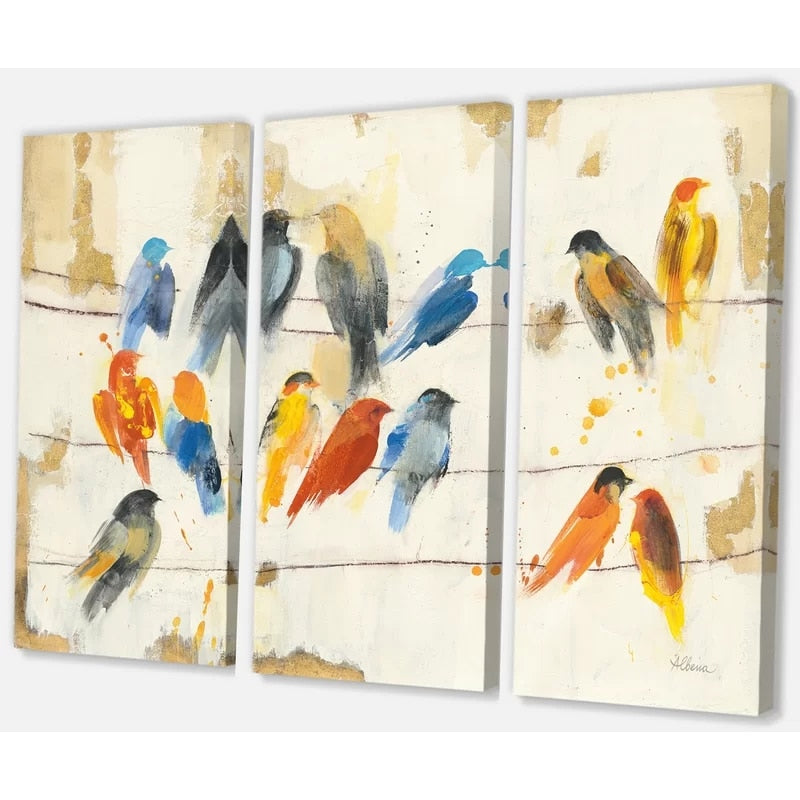 Colorful Birds - Canvas Wall Art Painting is a premium canvas that adds a colorful touch to your decor. The canvas features painted images of multiple colorful birds sitting on a line on a neutral background. It's a calm and relaxing canvas to put up anywhere!