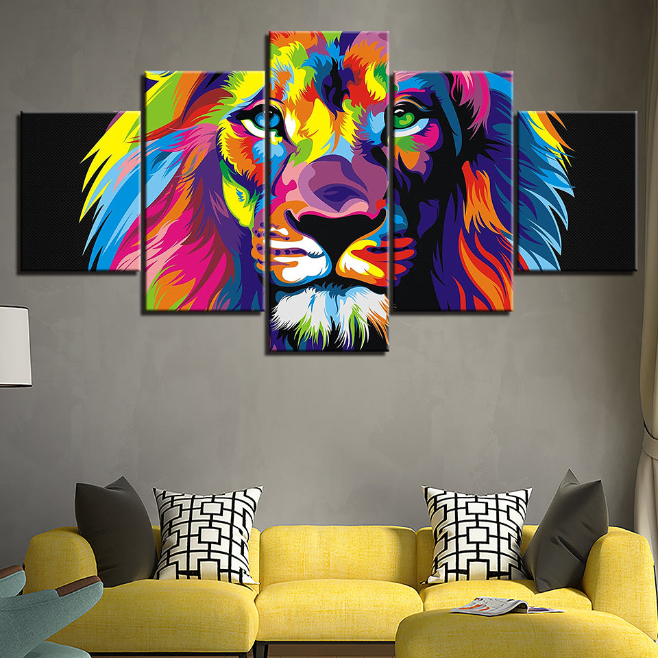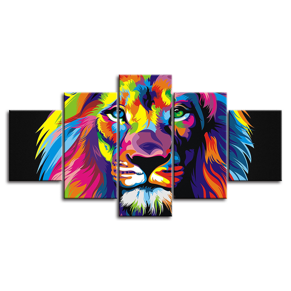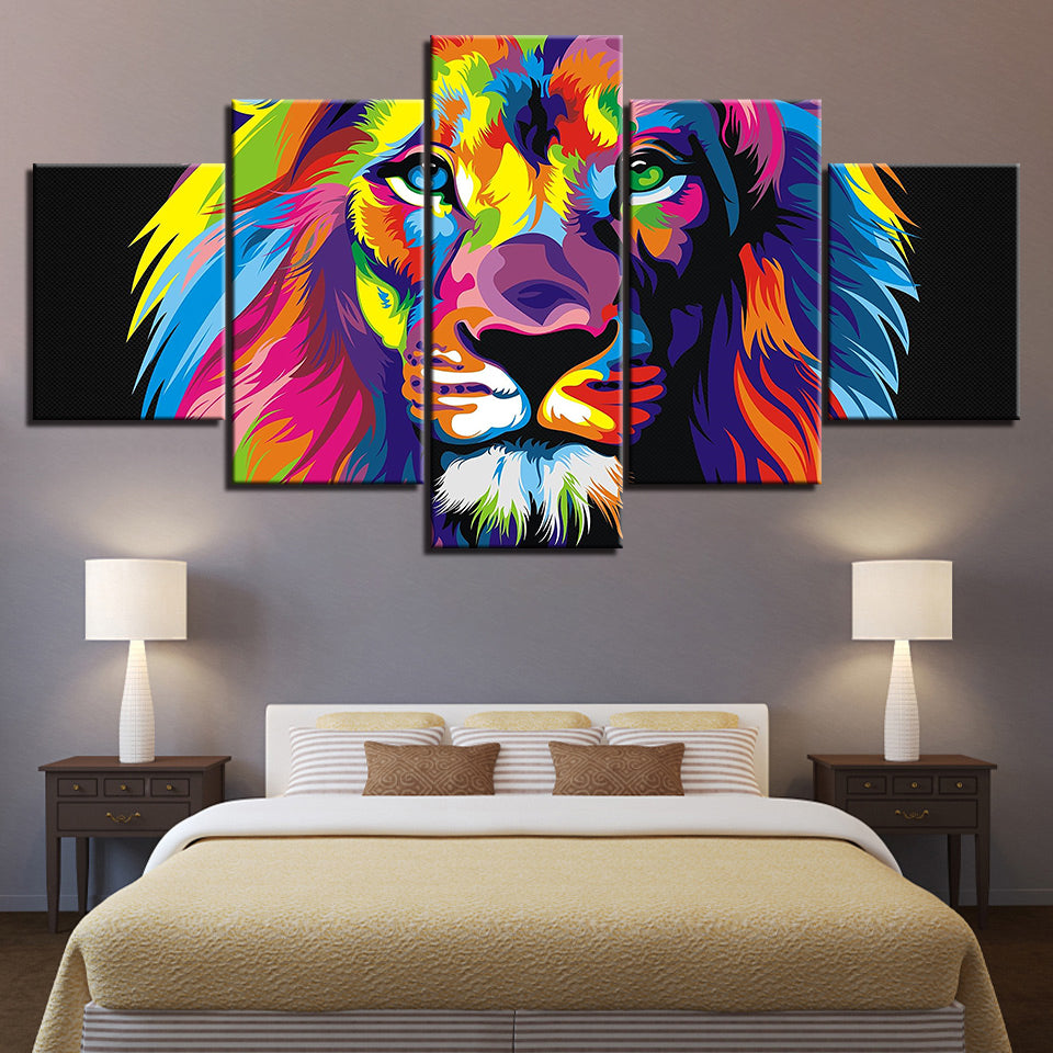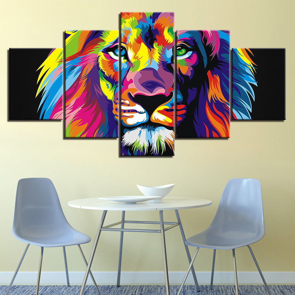 Colorful Lion - Canvas Wall Art Painting is a premium canvas that adds a touch of color and boldness right to your décor. The canvas features a lion's face painted in many different pops of color in front of a black background. This is a great picture to set up in a bedroom or living room. The Wall Art is perfect for decorating your bedroom, dining room, living room, office, dormitory, hotel lobby, and more! Mix and match your favorite pieces to create an eye-catching feature wall.