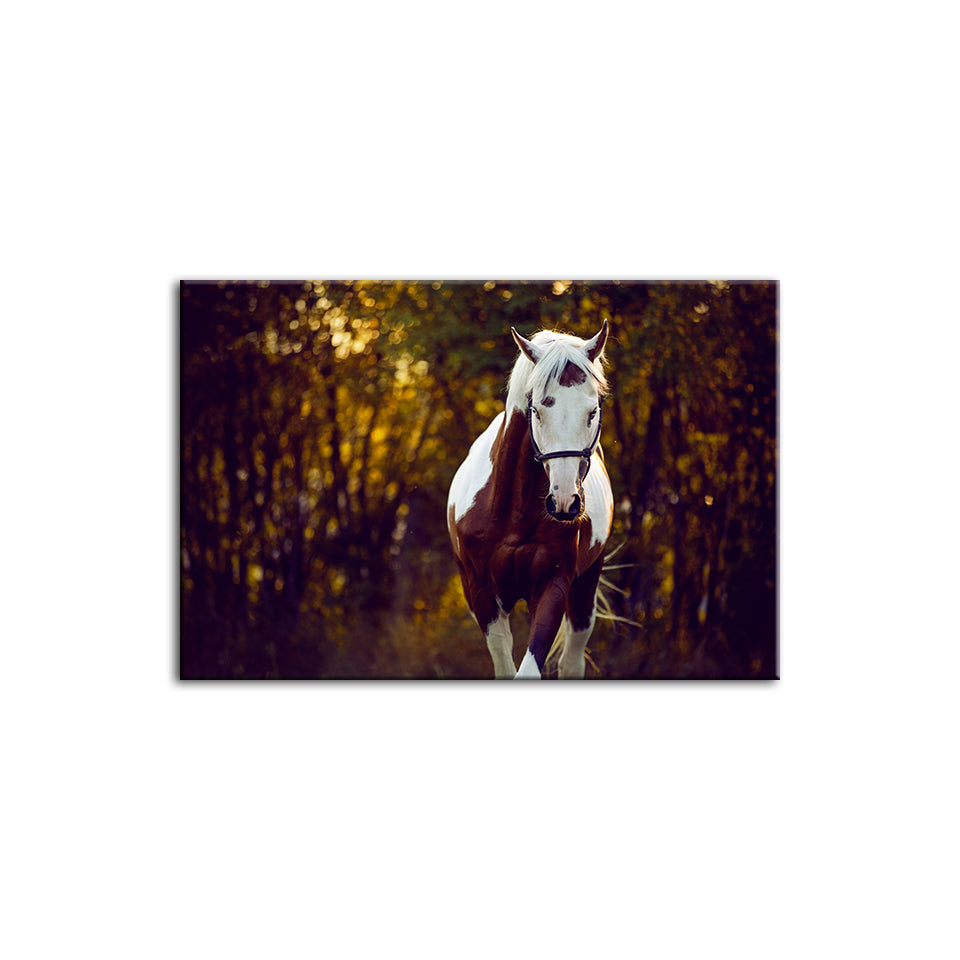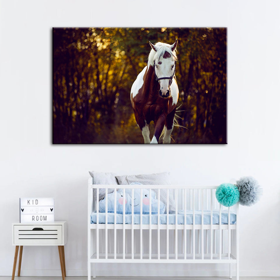 Courtly Overo Horse - Canvas Wall Art Painting is a premium canvas that adds a touch of wildlife art to your décor. The canvas features a charming white and brown Overo-coated horse, taking a leisurely stroll through the forest. The Wall Art is perfect for decorating your bedroom, dining room, living room, office, dormitory, hotel lobby, and more! Mix and match your favorite pieces to create an eye-catching feature wall.