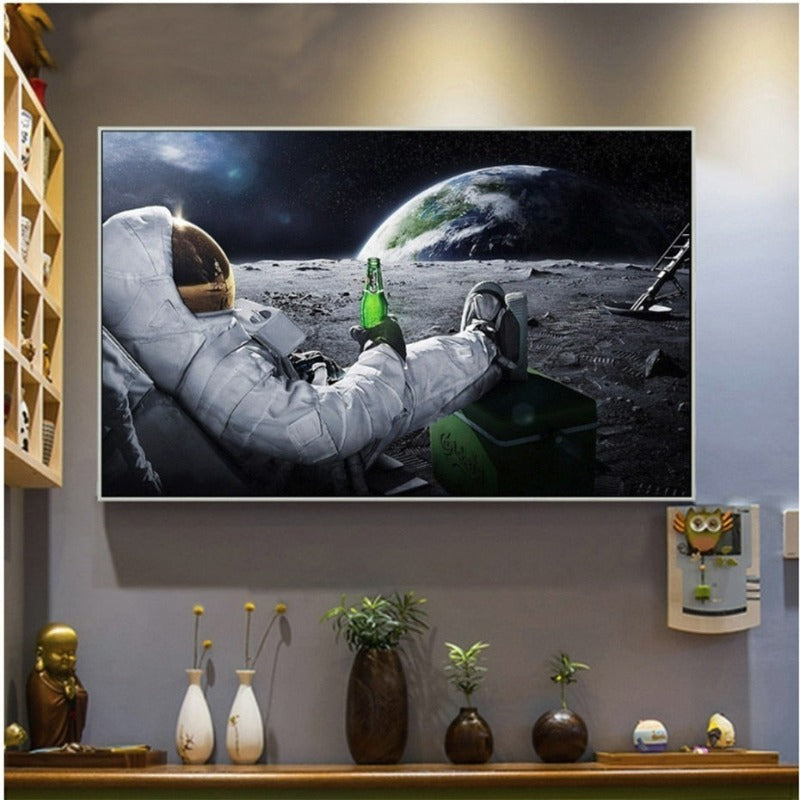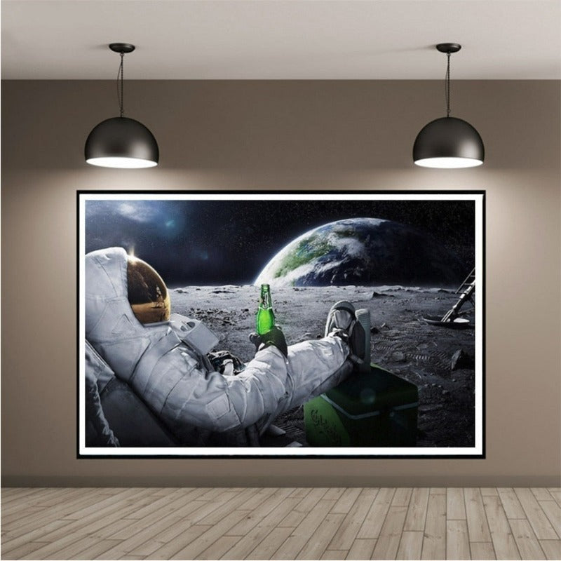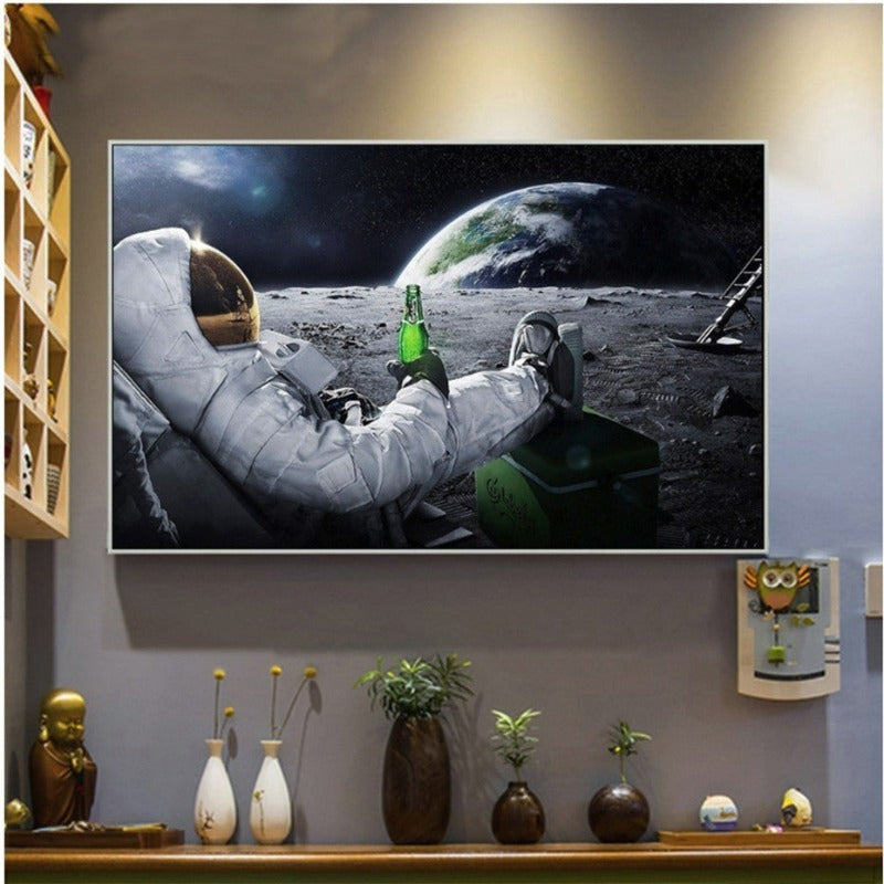 Creatively Astronaut Drink Beer - Canvas Wall Art Painting is a premium canvas that adds space art to your décor. The painting is of an astronaut drinking beer, a little bit of humor but the message of thinking out of the box is clear from the portrait. The Wall Art is perfect for decorating your bedroom, dining room, living room, office, dormitory, hotel lobby, and more! Mix and match your favorite pieces to create an eye-catching feature wall.