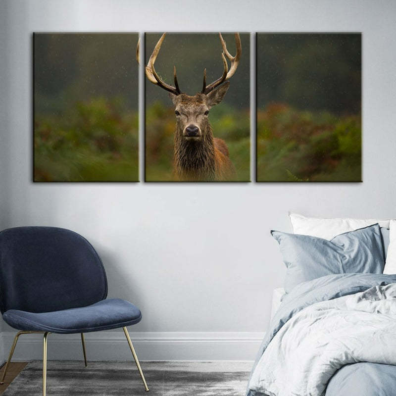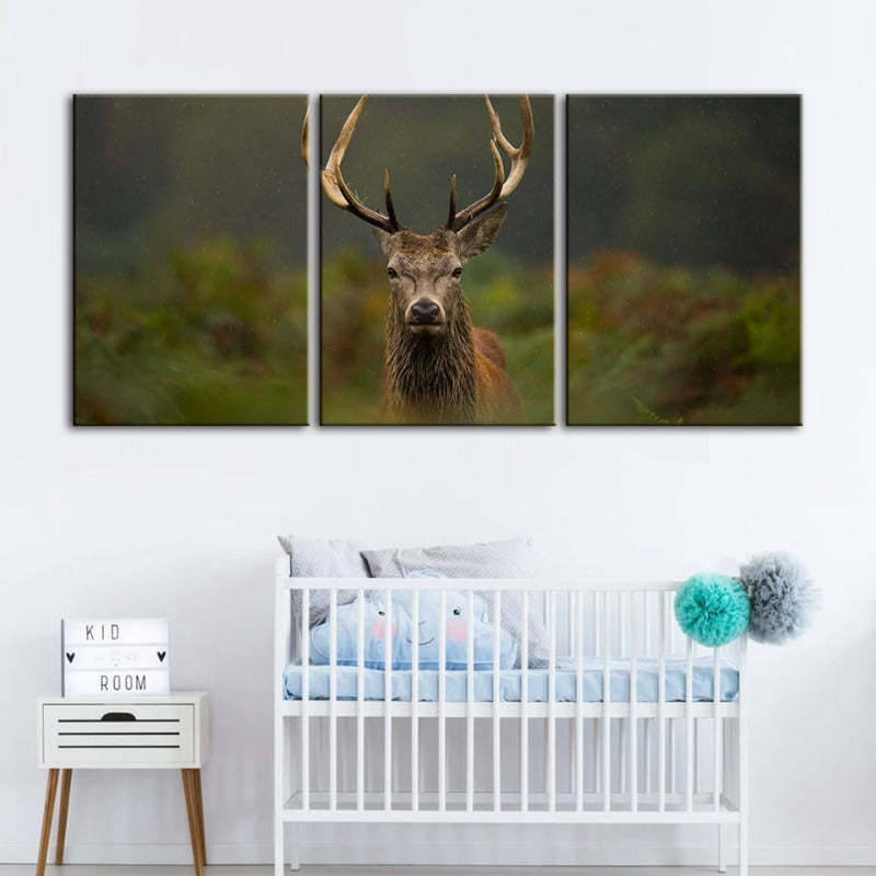 Curios Deer Amongst Ferns-Canvas Wall Art Painting 3 Pieces is a premium canvas that adds a peaceful touch to your décor. The canvas features a single curios deer with its head peaking above a clearing full of ferns to face the viewer.