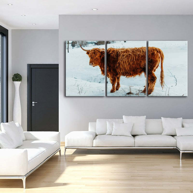 Curly Haired Cow-Canvas Wall Art Painting 3 Pieces is a premium canvas that adds a touch of wildlife art to your décor. The canvas features the iconic painting of a curly-haired cow in front of a snowed background across three canvases. The Wall Art is perfect to decorate your bedroom, dining room, living room, office, dormitory, hotel lobby, and more! Mix and match your favorite pieces to create an eye-catching feature wall.