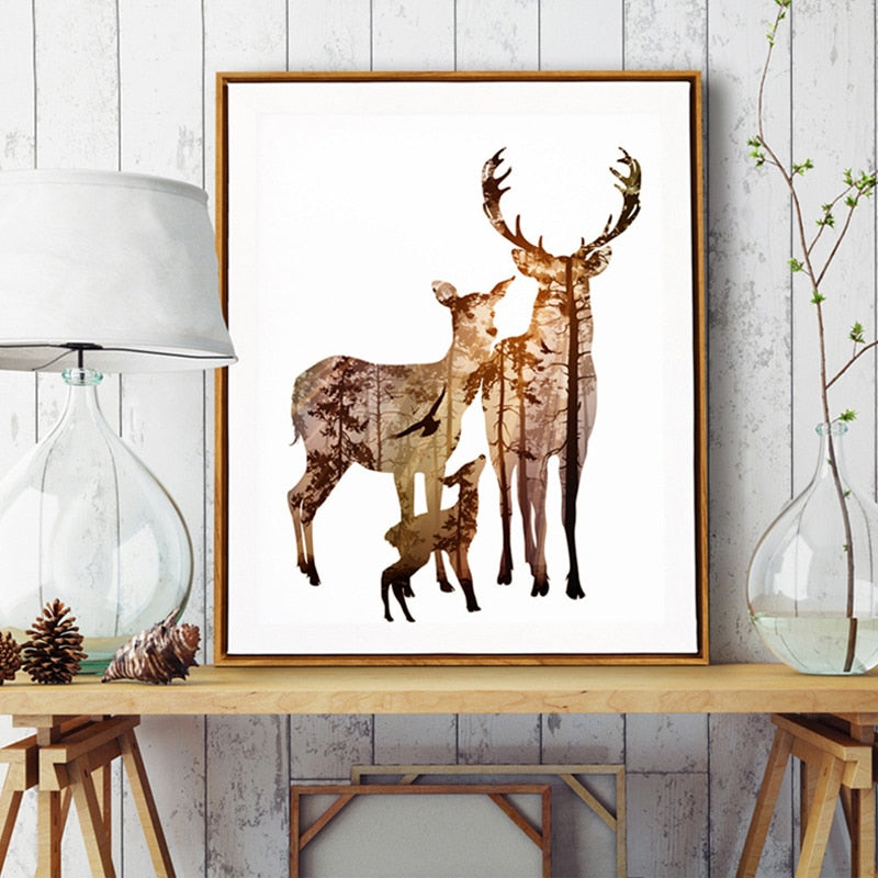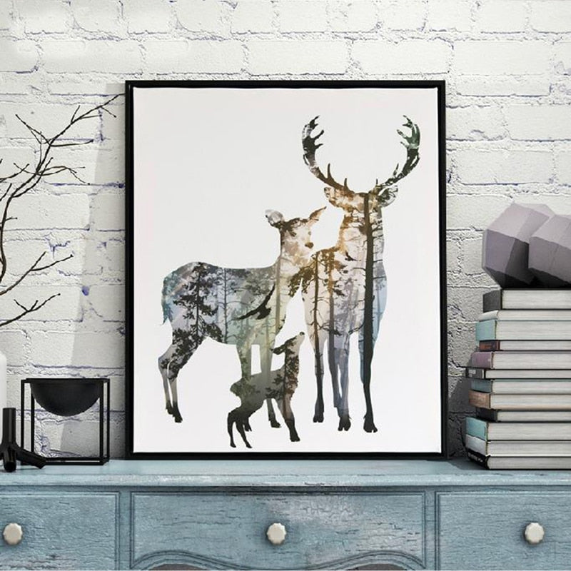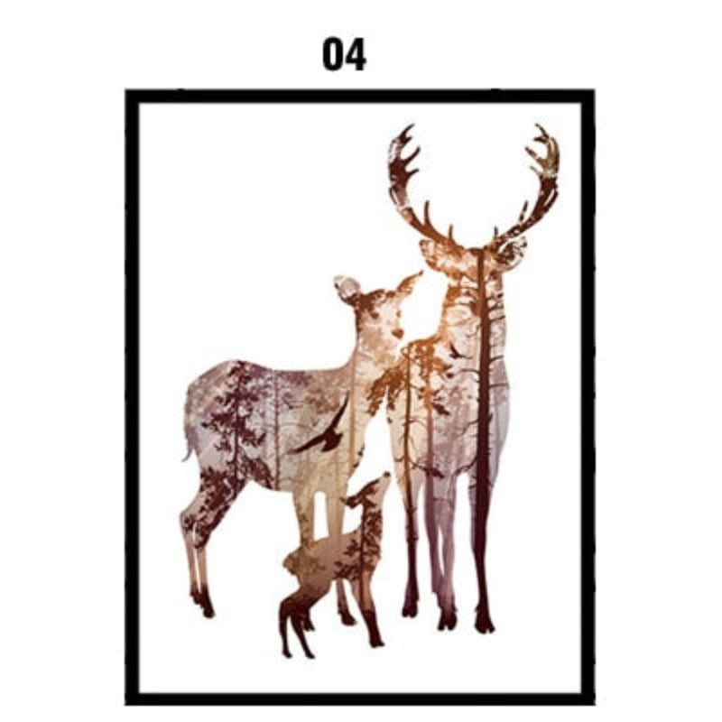 Deer Animals Forest - Canvas Wall Art Painting is a premium canvas that features different animals. These are white background canvases with different animals painted on them. It can be put up on any wall of your living room, bedroom, dining room, kids' room, or even at your workplace.