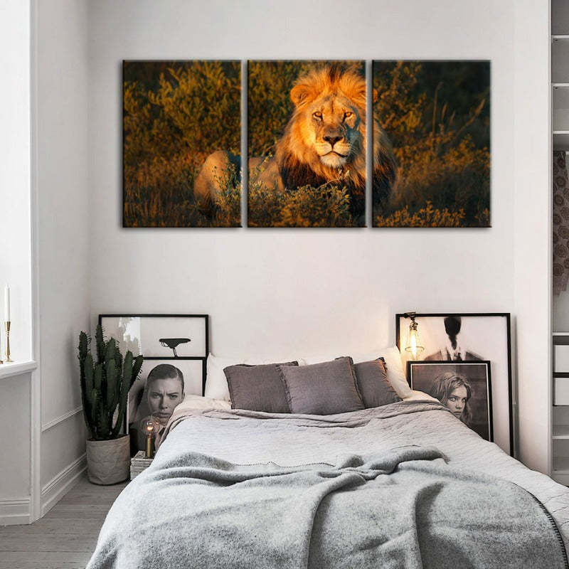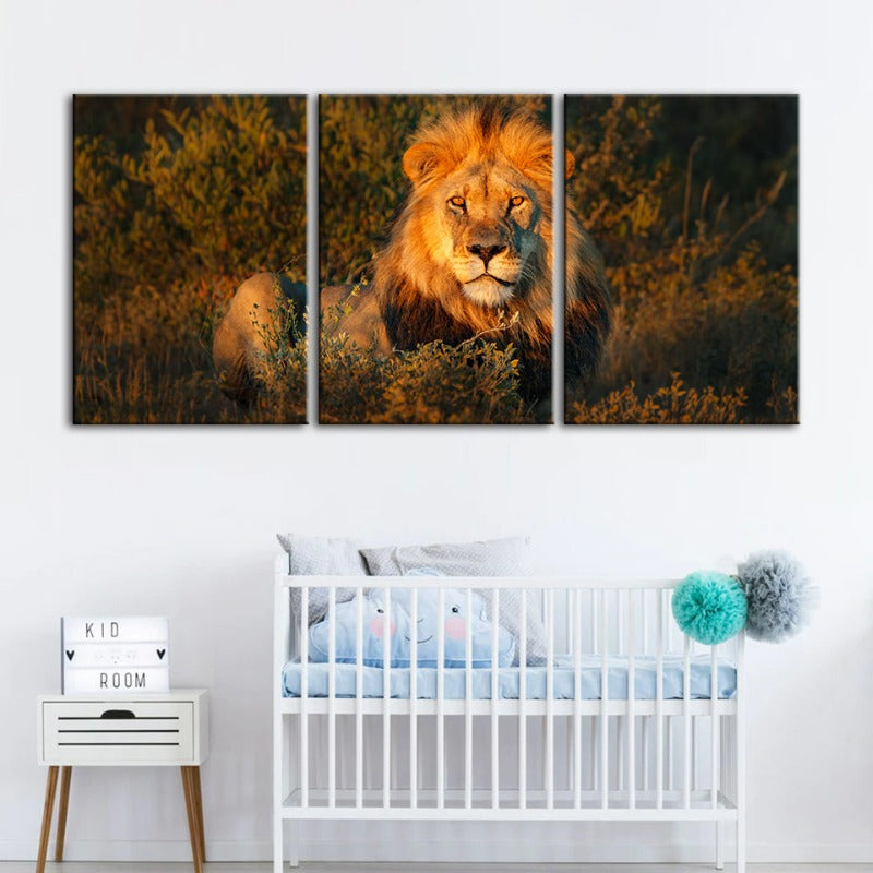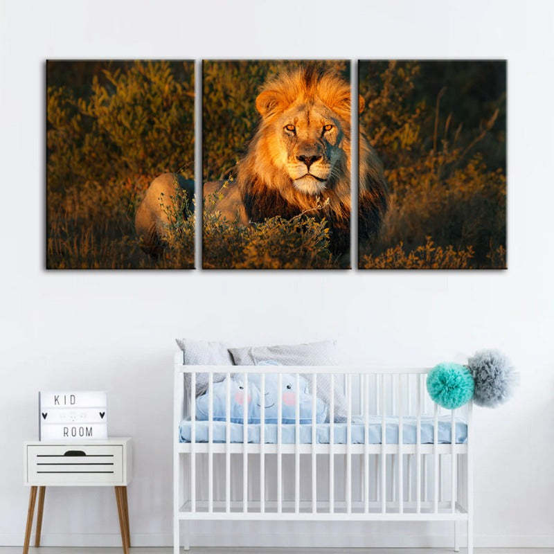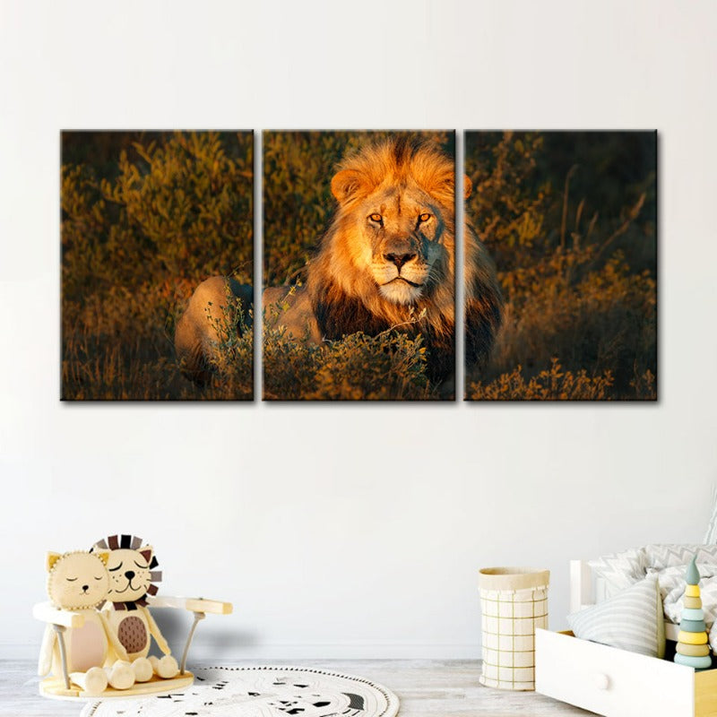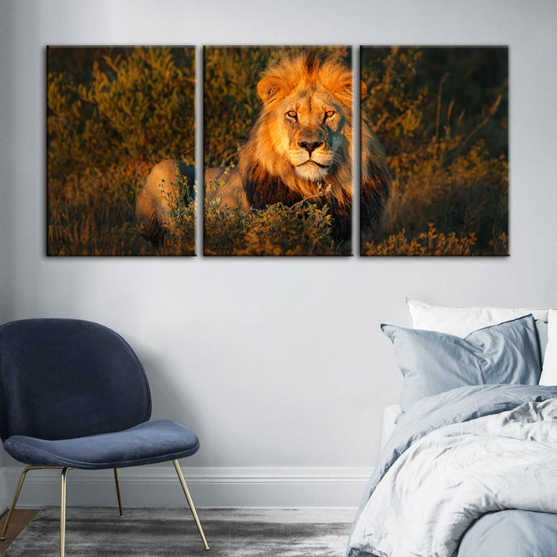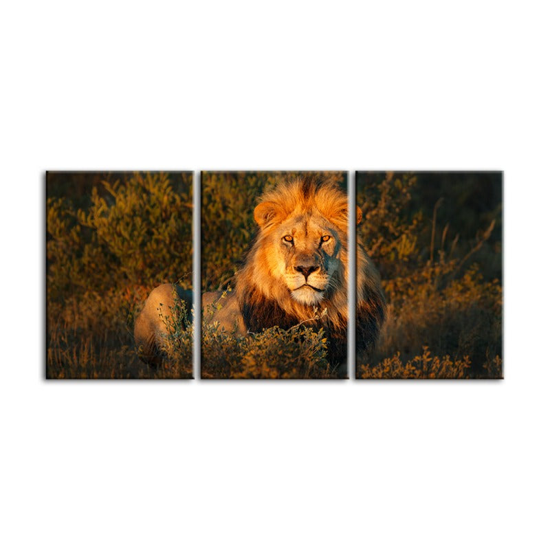 Divine Sunset Lion-Canvas Wall Art Painting 3 Pieces is a premium canvas that adds a peaceful touch to your décor. The canvas features a lone lion facing the viewer in the dying light of a setting sun.