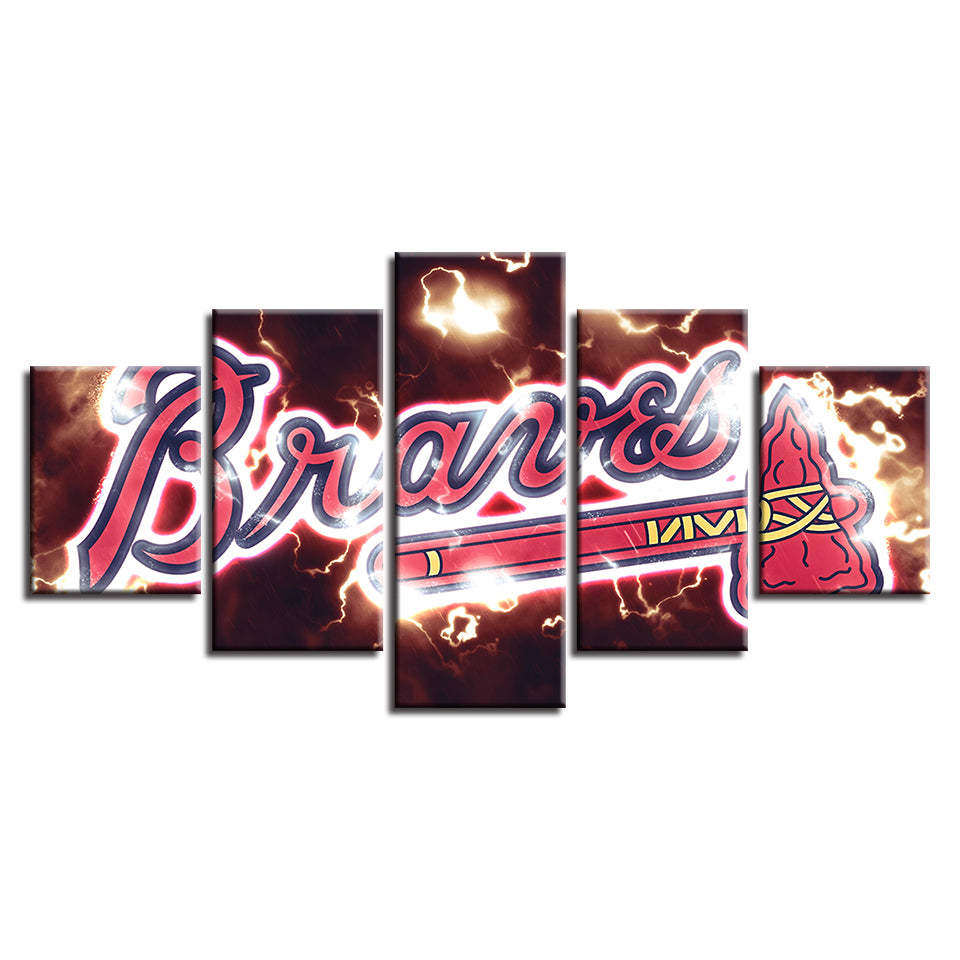Dynamic Braves Logo 5 Piece - Canvas Wall Art Painting is a premium canvas that adds a peaceful touch to your décor. The canvas features a magnificently electrifying version of the Atlanta Braves' primary logo with vivid red lightning accents.