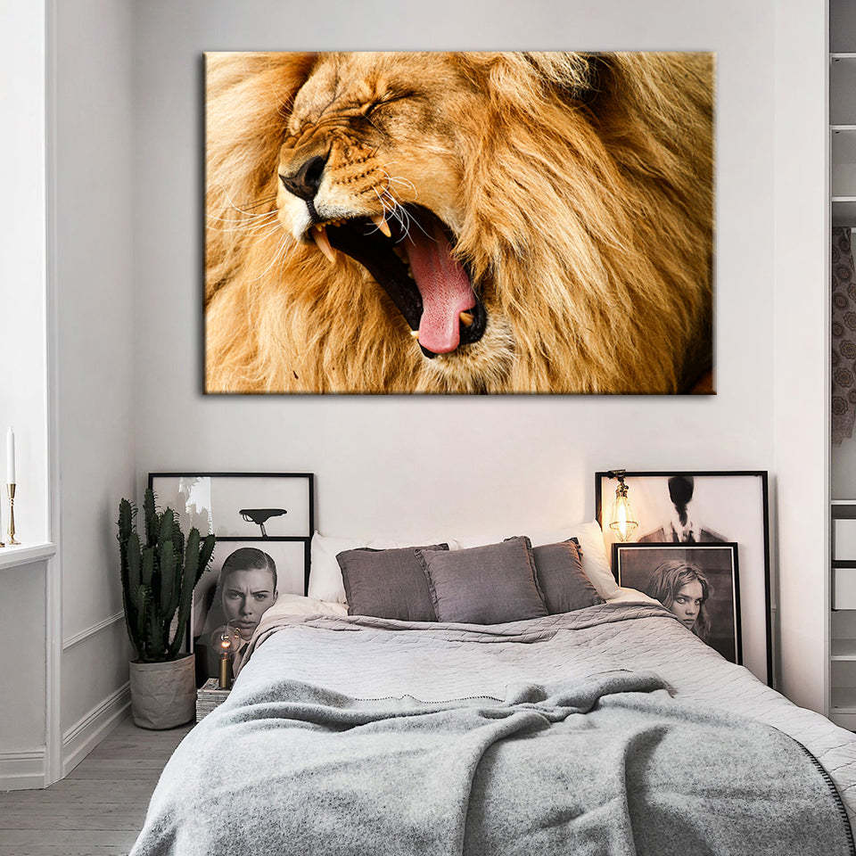 Enraged Lion's Roar - Canvas Wall Art Painting is a premium canvas that adds a touch of wild life art to your décor. The canvas features a lion caught mid roar demonstrating both it's power and grace. The Wall Art is perfect to decorate your bedroom, dining room, living room, office, dormitory, hotel lobby, and more! Mix and match your favorite pieces to create an eye-catching feature wall.