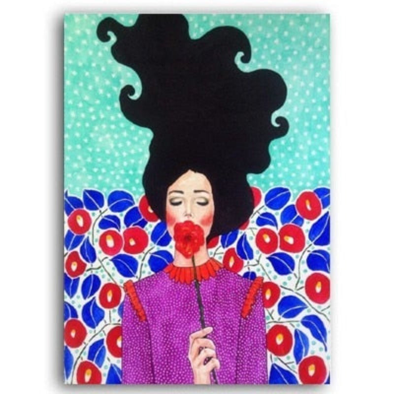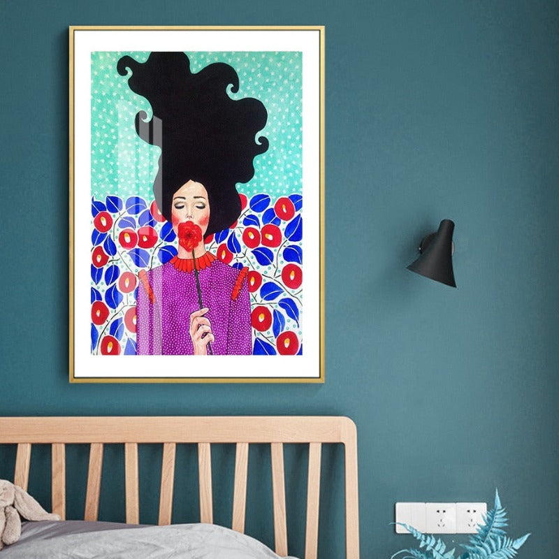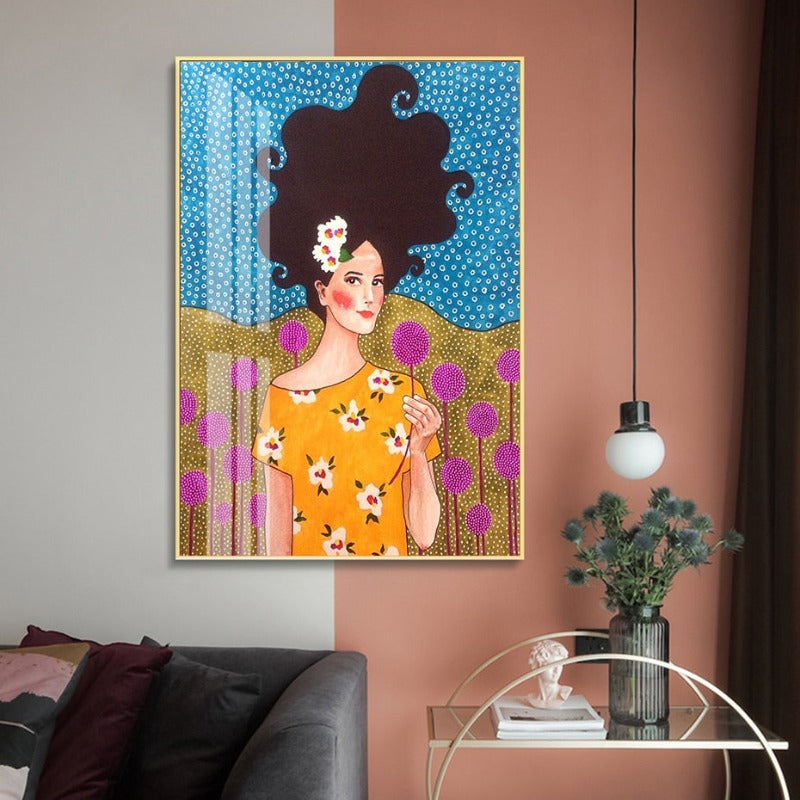 Fashion Flower Girl - Canvas Wall Art Painting is a fashion flower girl painting with the spray painting technique in a vertical rectangle shape made from canvas material suitable for every living space for Decor, It is available in a variety of designs and abstract shapes making it ideal for gifting in every occasion.