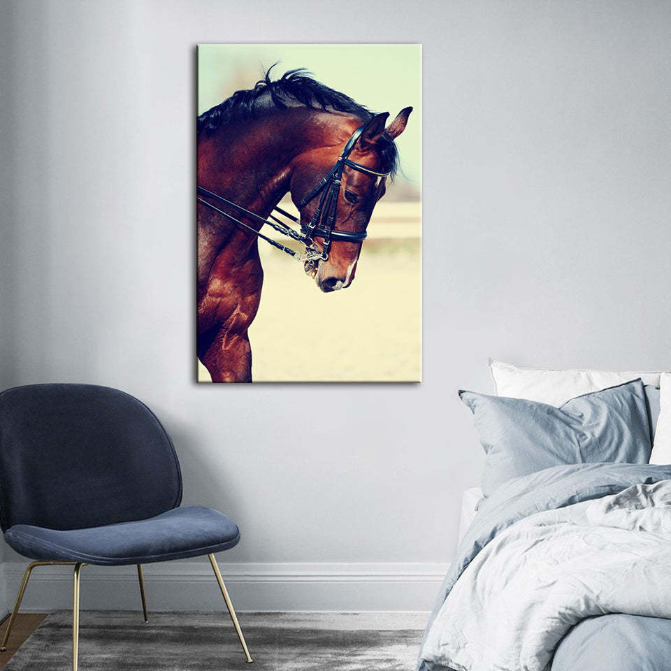 Graceful Haltered Horse - Canvas Wall Art Painting is a premium canvas that adds a touch of wildlife art to your décor. The canvas features the portrait of a young elegant haltered horse. The Wall Art is perfect for decorating your bedroom, dining room, living room, office, dormitory, hotel lobby, and more! Mix and match your favorite pieces to create an eye-catching feature wall.