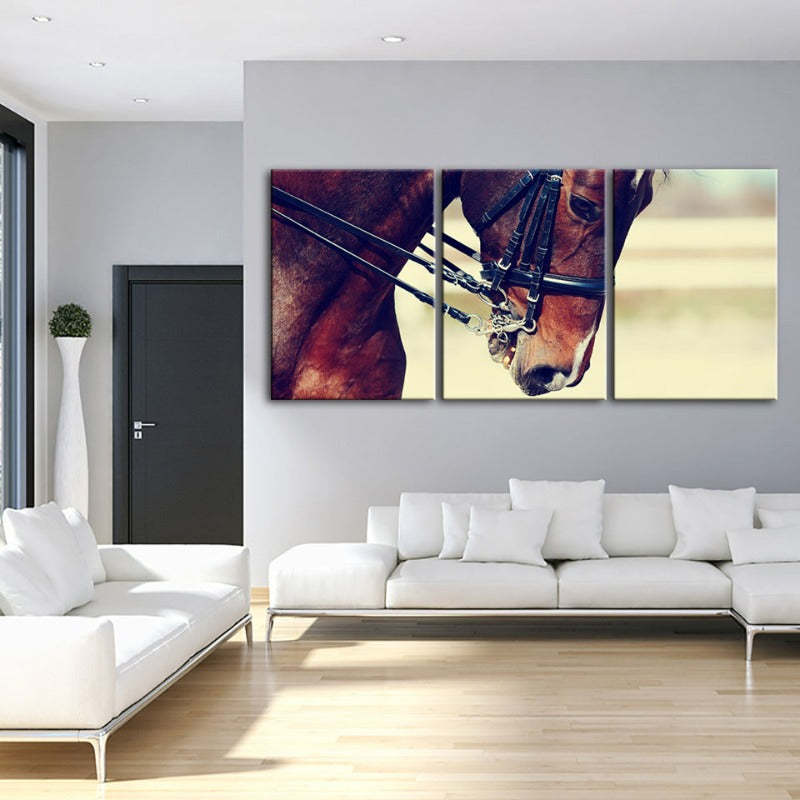 Graceful Haltered Horse-Canvas Wall Art Painting 3 Pieces is a premium canvas that adds a peaceful touch to your décor. The canvas features the portrait of a young elegant haltered horse.