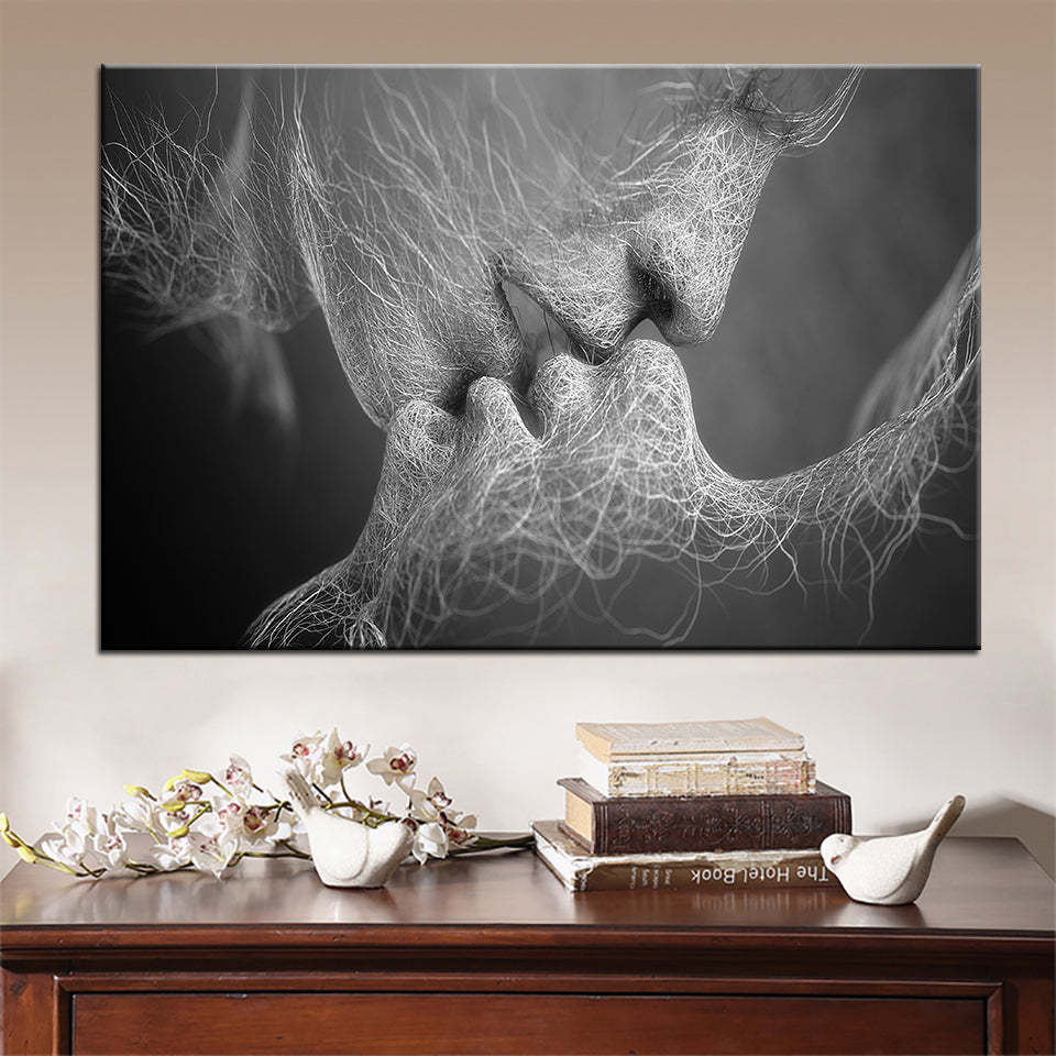 Lines of Lovers is a premium canvas that adds a thoughtful touch to your decor. The canvas features a silhouette of two lovers shaped by white lines that you can hang on your walls.
