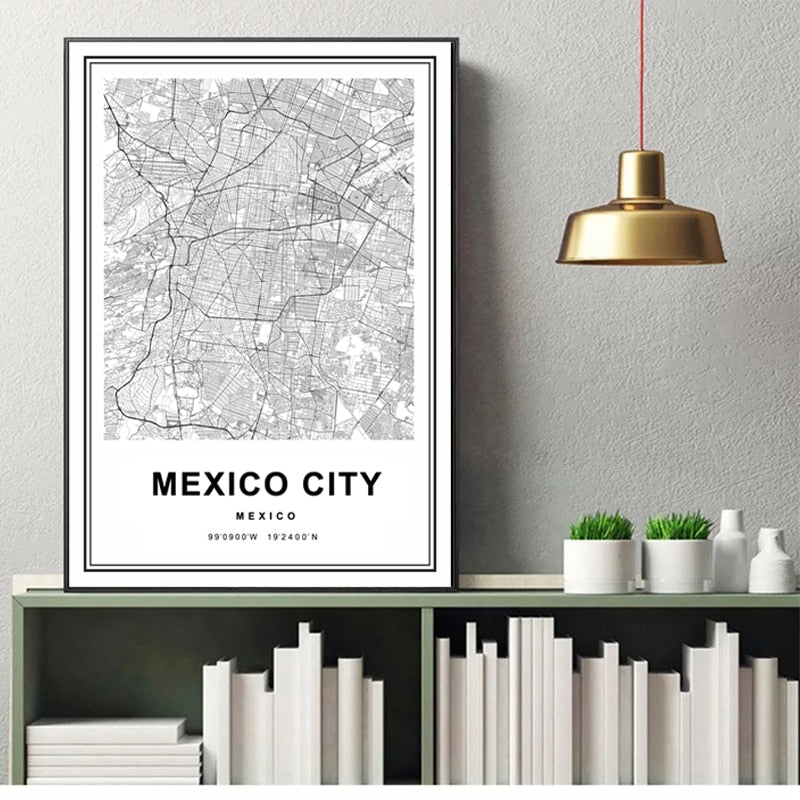 Mexico City Map Mexico Prints Art - Canvas Wall Art Painting