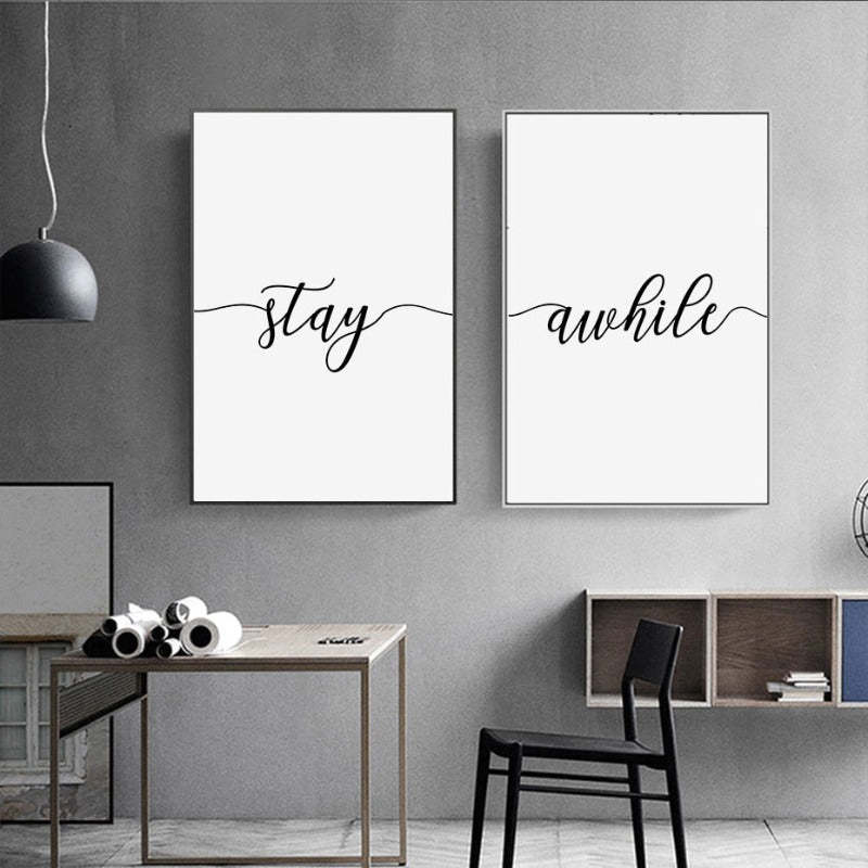 Minimalist Black And White Stay Awhile - Canvas Wall Art Painting