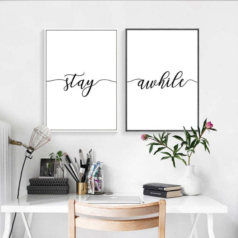 Minimalist Black And White  Stay Awhile - Canvas Wall Art Painting is a premium canvas that is a perfect piece of decor for any place. These are high-quality frames with a white background painted with waterproof inks. These are perfect for any space be it your living room, dining room, bedroom, kids' room, or even any office, as these can enhance the look of any space.