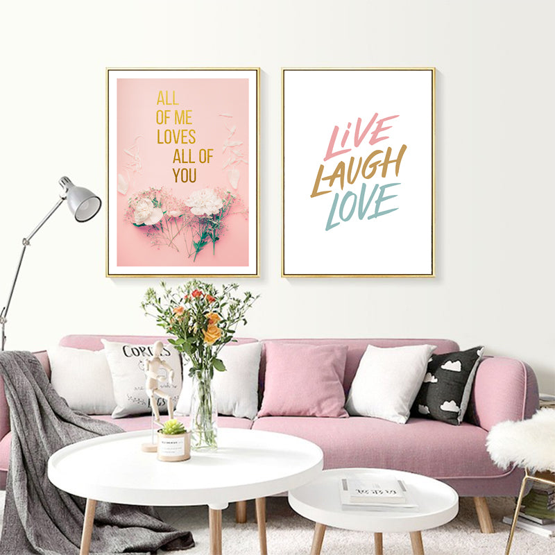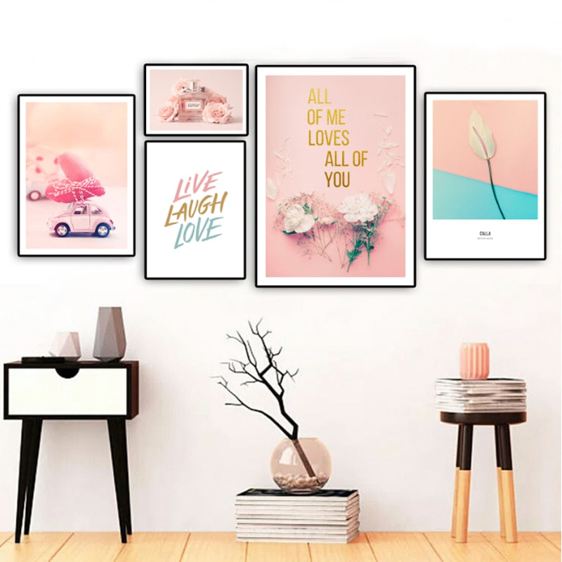 Modern Pink Fashion Love Live Laugh Rose - Canvas Wall Art Painting