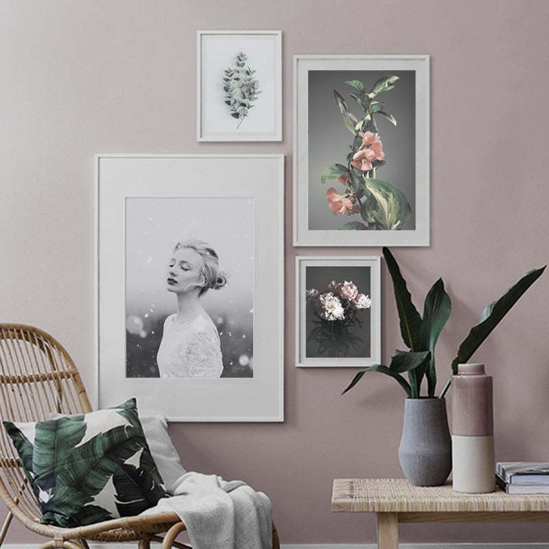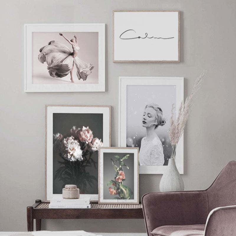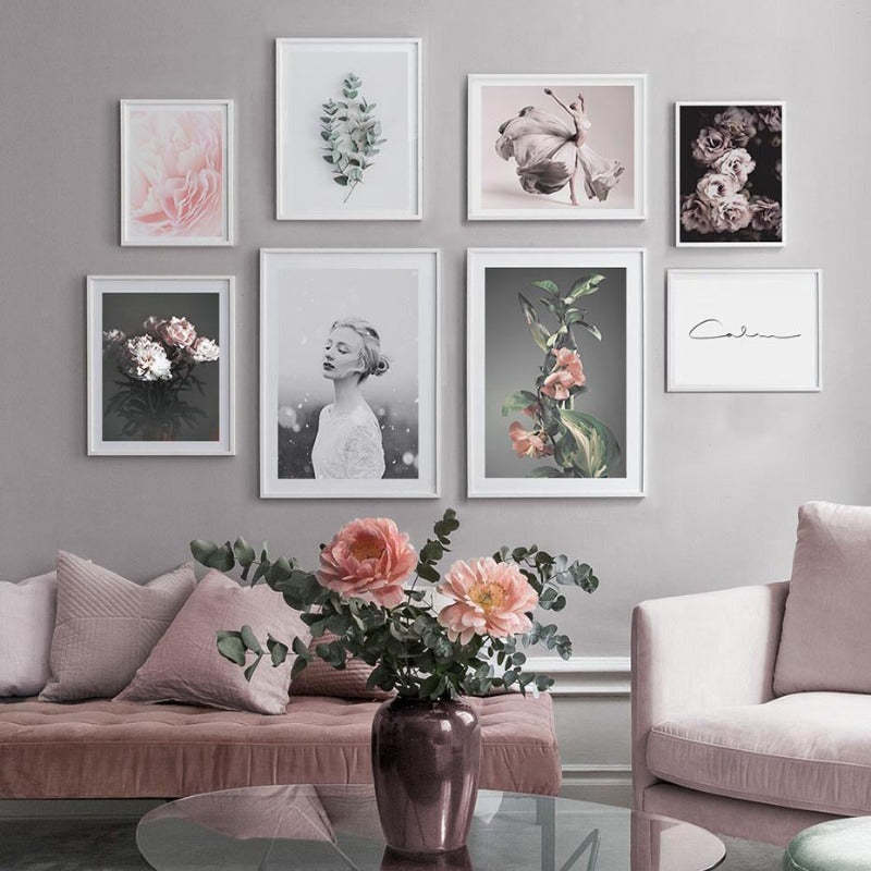 Modern Pink Floral Girl Calm - Canvas Wall Art Painting