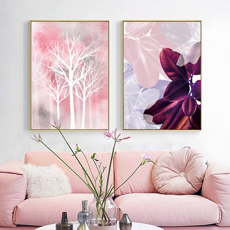 Modern Pink Leaves Woodland Watercolor - Canvas Wall Art Painting is an abstract art painting featuring pink color leaves and trees, adding a perfect touch of nature along with aesthetics to any place. These are premium canvas that is also a great gift idea for your loved ones.