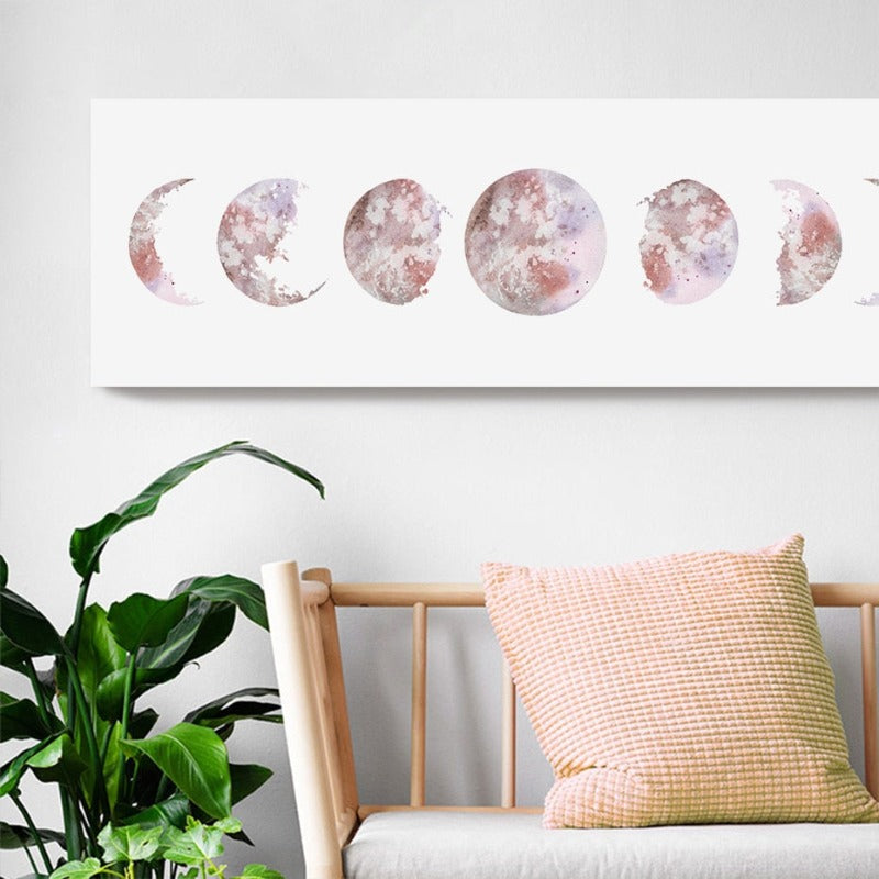 Modern Various Moon Phases Isolated Prints - Canvas Wall Art Painting is a premium canvas that features different phases of the moon. These are high-quality frames with a white background painted with waterproof inks. These are perfect for any space be it your living room, dining room, bedroom, kids' room, or even any office, as these can enhance the look of any space.
