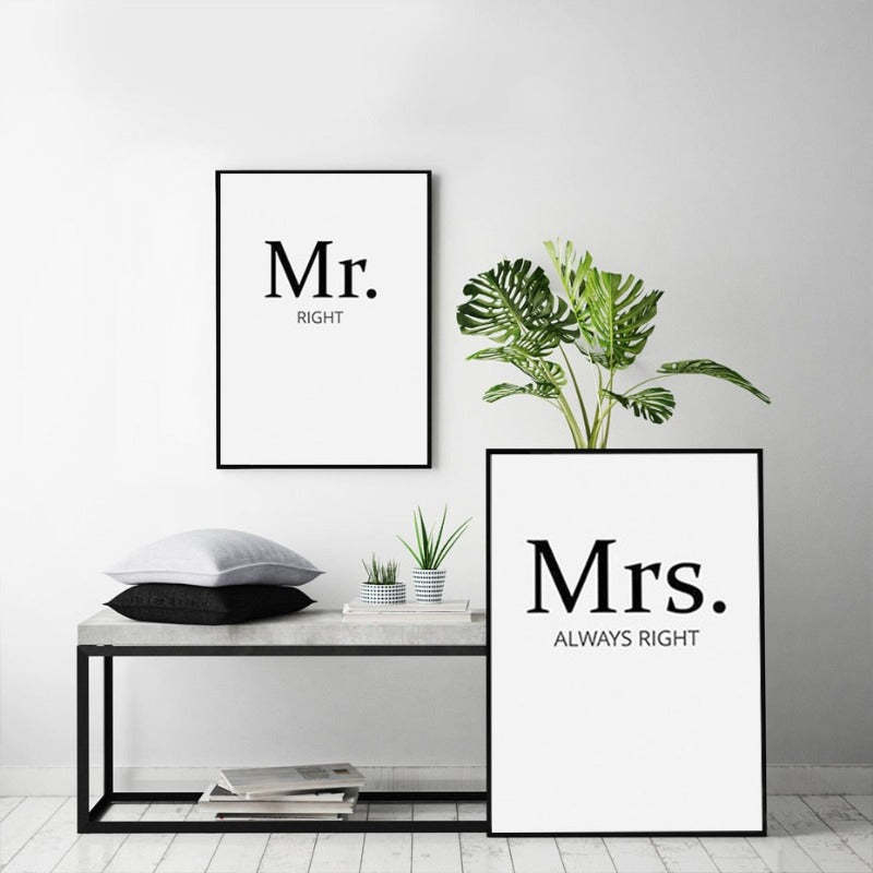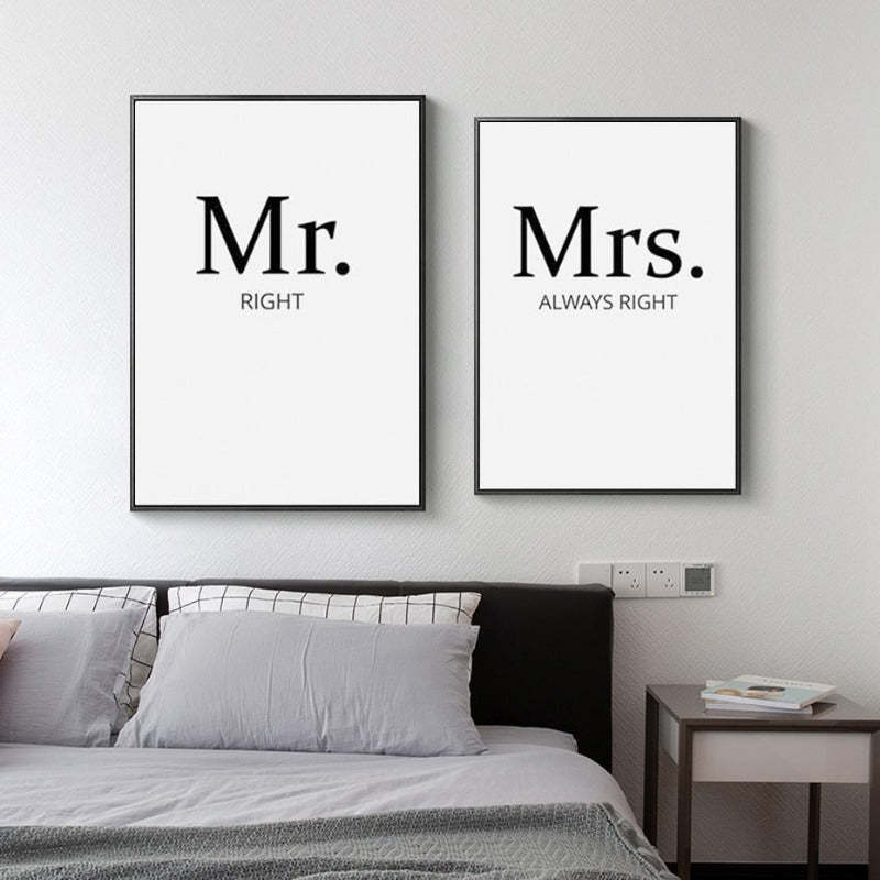 Mr. Right Mrs. Always Right Couples - Canvas Wall Art Painting is the perfect gift for couples, as these will add some fun elements to any place and also is a great piece of decor. These are high-quality canvas with a white background painted with black color waterproof ink. These are the perfect gift for any occasion.