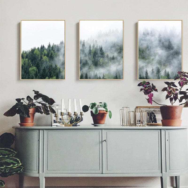 Nature Fog Forest Landscape Nordic - Canvas Wall Art Painting is a premium canvas that adds a touch of scenic beauty with greenery to your décor. The Wall Art is perfect for decorating your bedroom, dining room, living room, office, dormitory, hotel lobby, and more! Mix and match your favorite pieces to create an eye-catching feature wall.