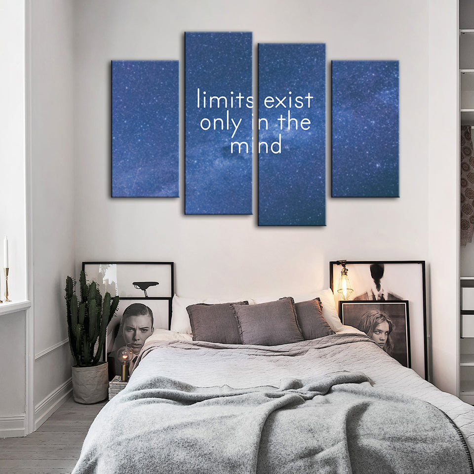 Only In The Mind 4 Piece - Canvas Wall Art Painting is a premium canvas that adds a thoughtful touch to your decor. The canvas features motivational words on limits in your life that you can hang on your walls.